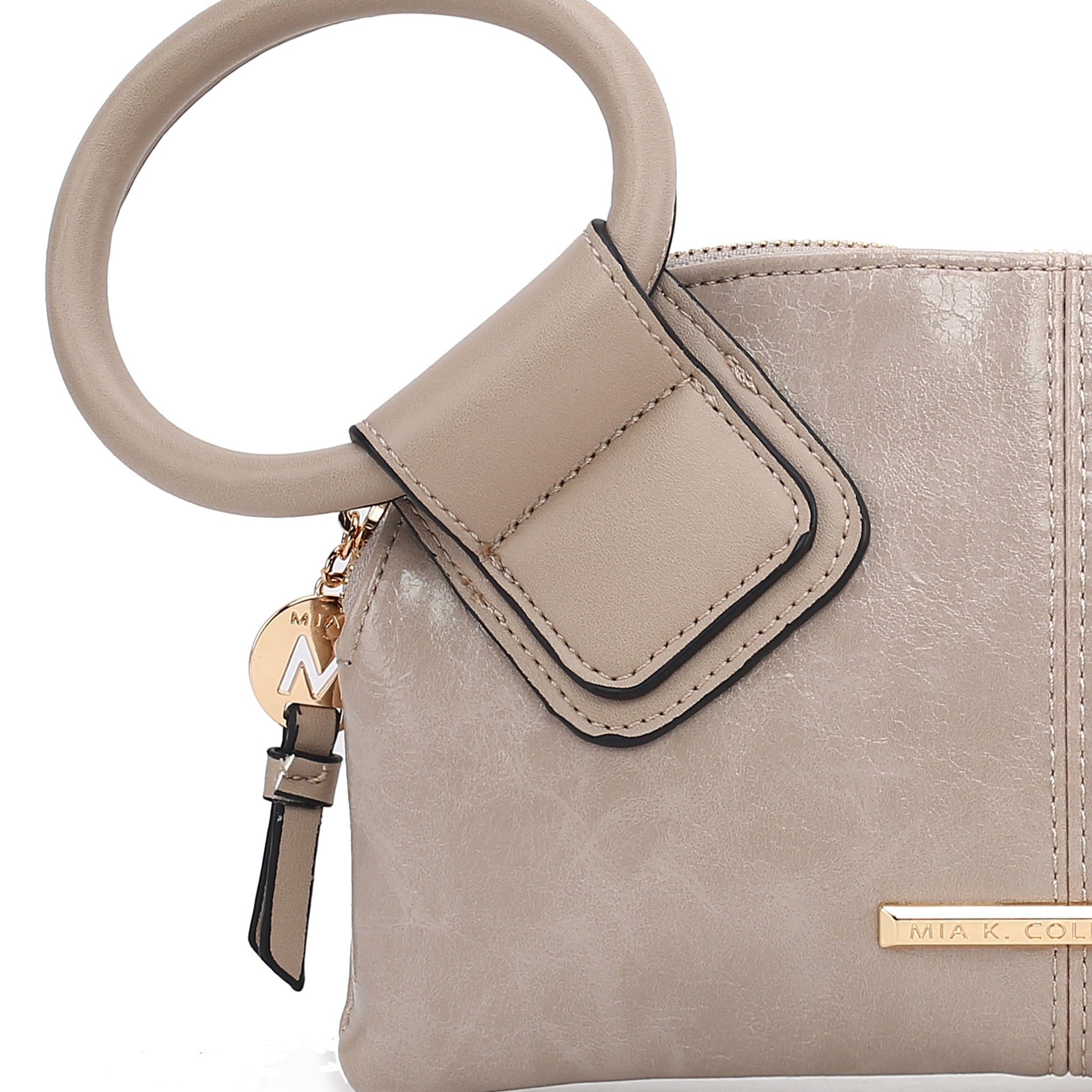 Simone brings crinkled texture faux leather and gold-tone detailing together for a wristlet with flair. The wrist handle keeps it easy to carry and it’s available in a range of colors to match every mood.