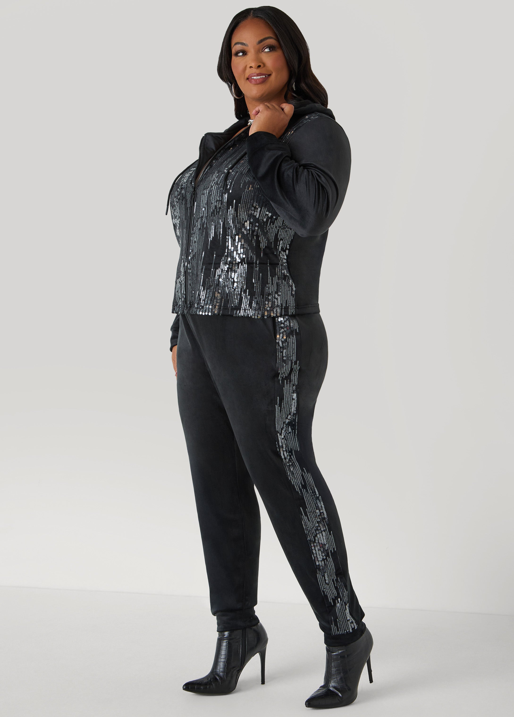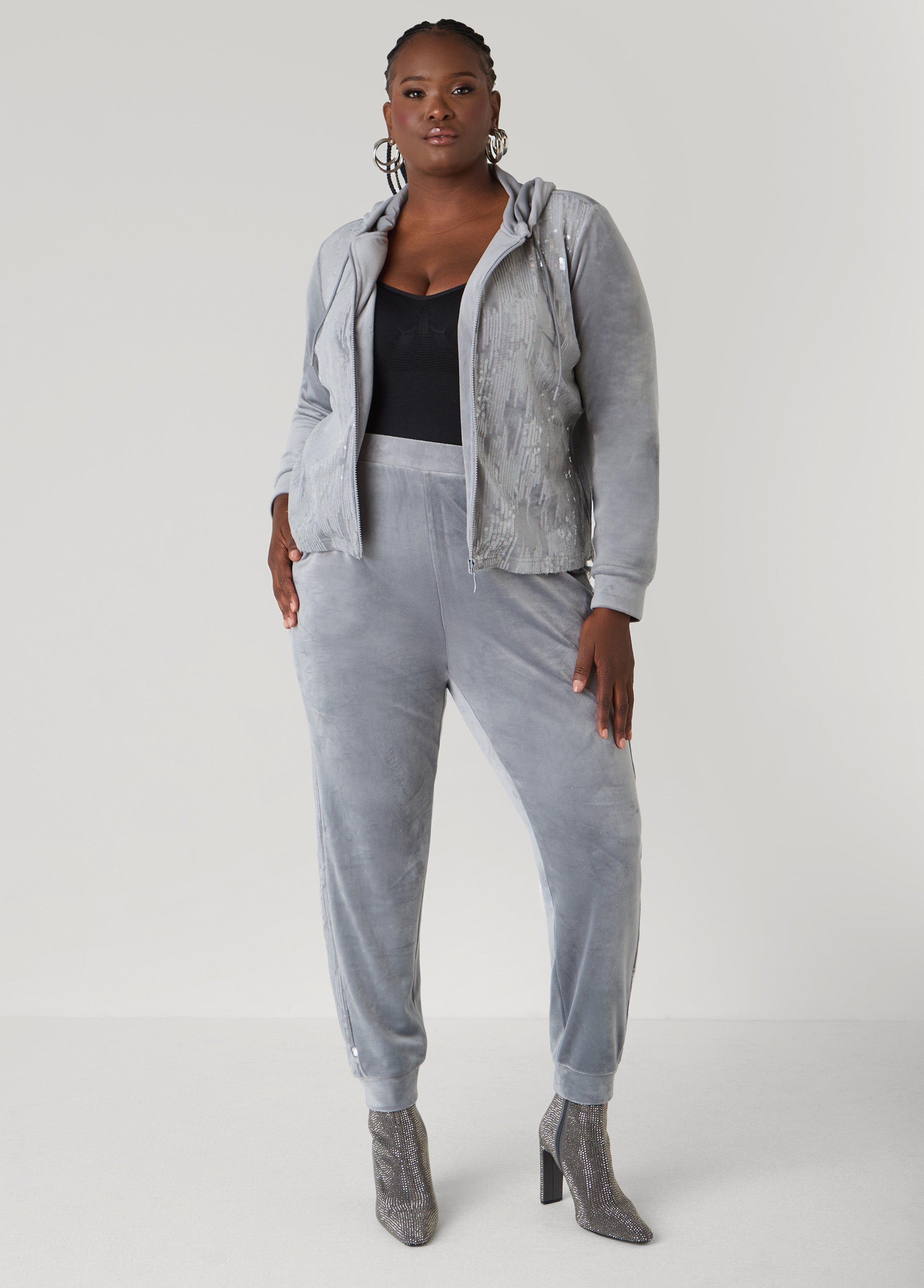Velour joggers that channel that 2000s It-girl energy. Soft, glam, and finished with sequins for just the right hit of sparkle. Pair with the matching hoodie and live your comeback moment.