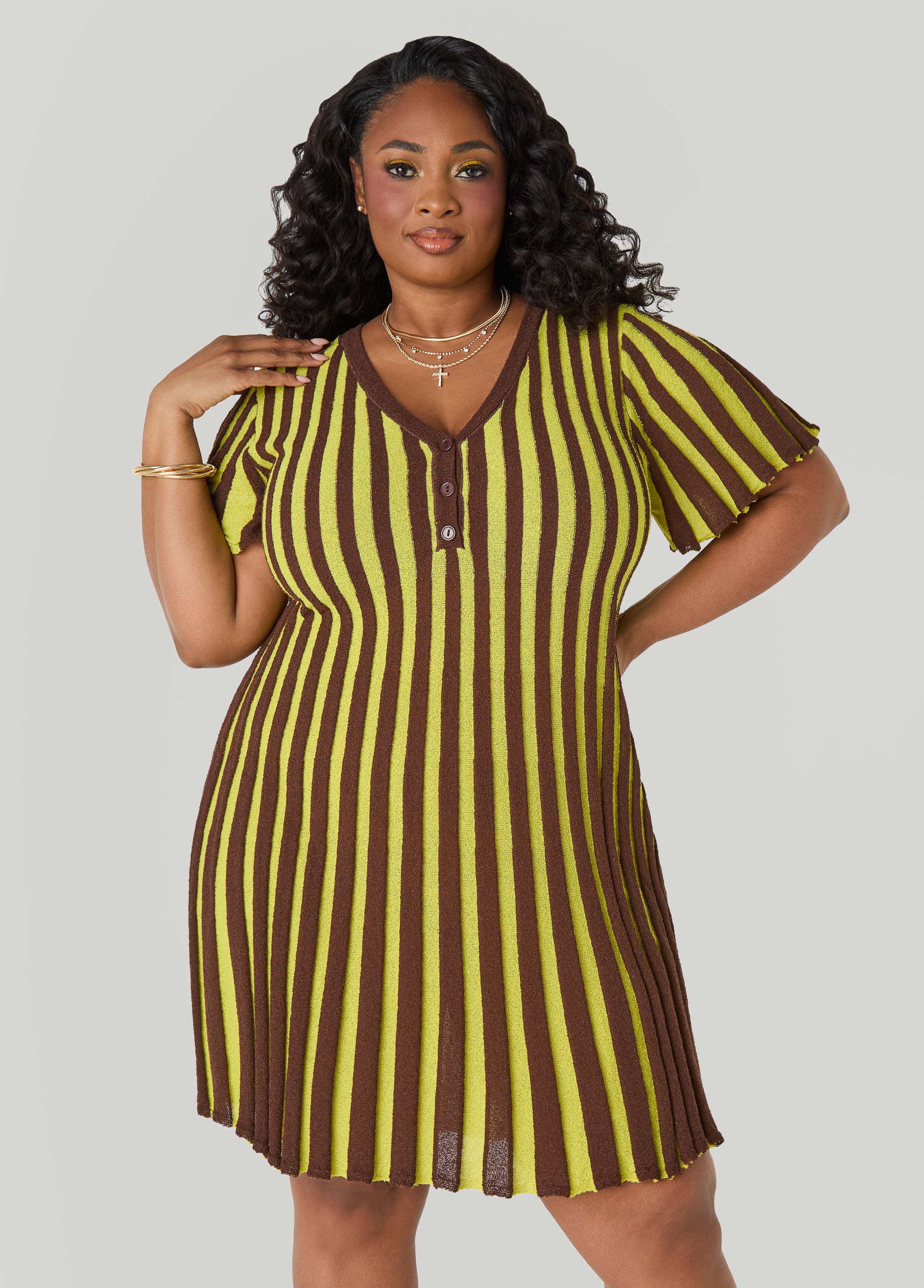 This striped bouclé sweater dress plays it close with a body-skimming fit and and button detail. The A-line skirt keeps things balanced giving you a look that feels confident & sexy.