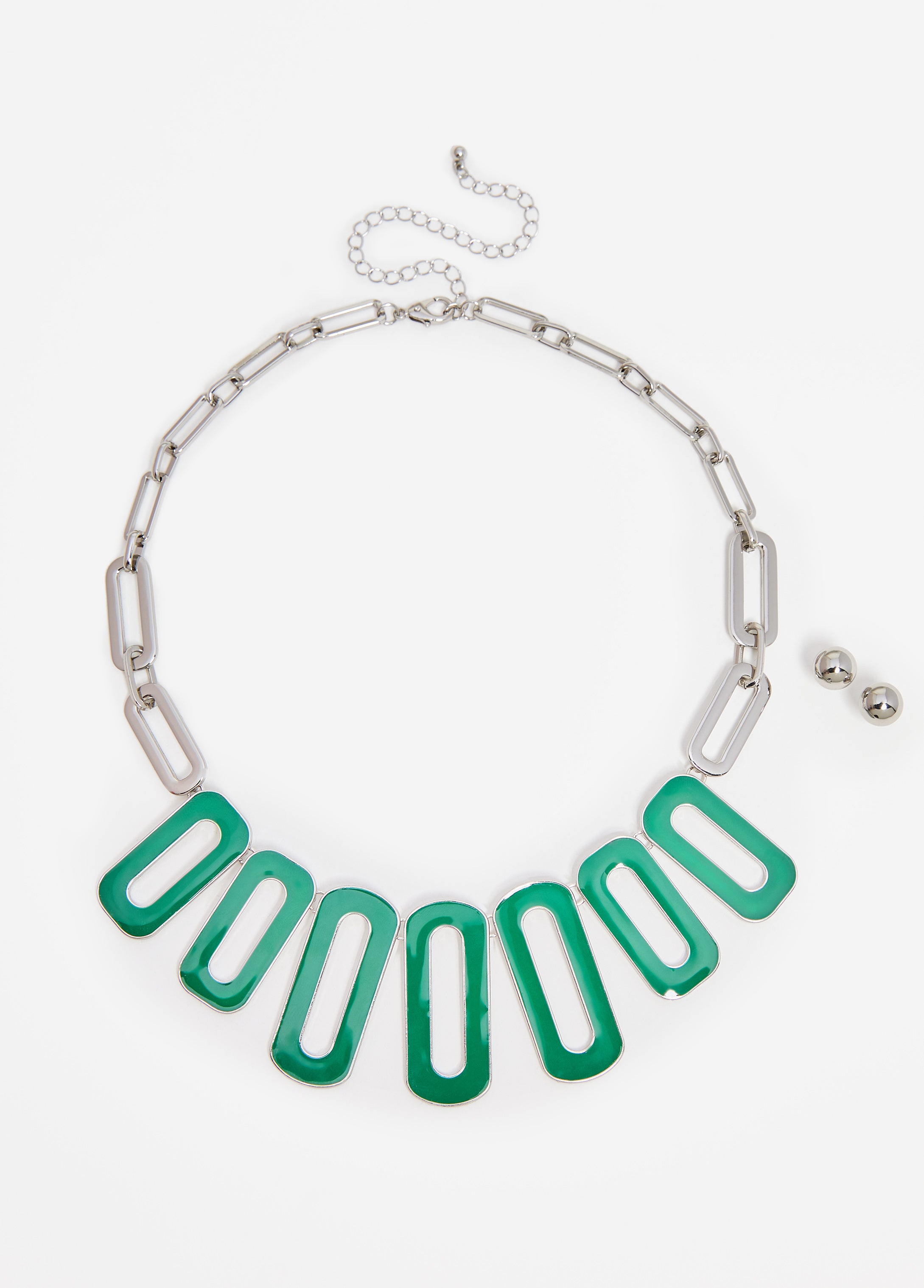 Pop some color into your silver rotation dripped in our necklace and earrings set accented by enamel link pendants.