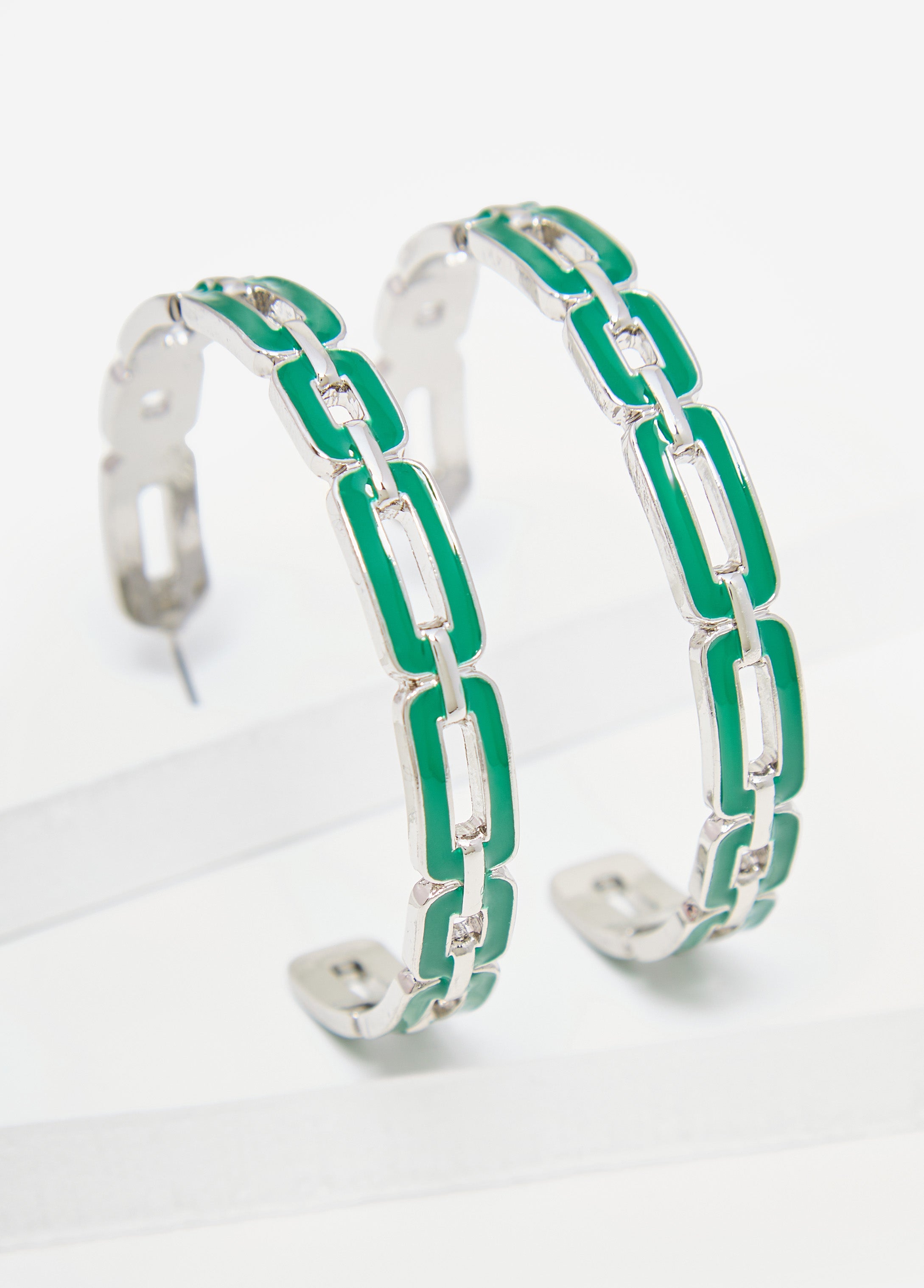 Silver hoops get a glow-up with enamel links that are just the right mashup of the classic fave with updated modern vibes.