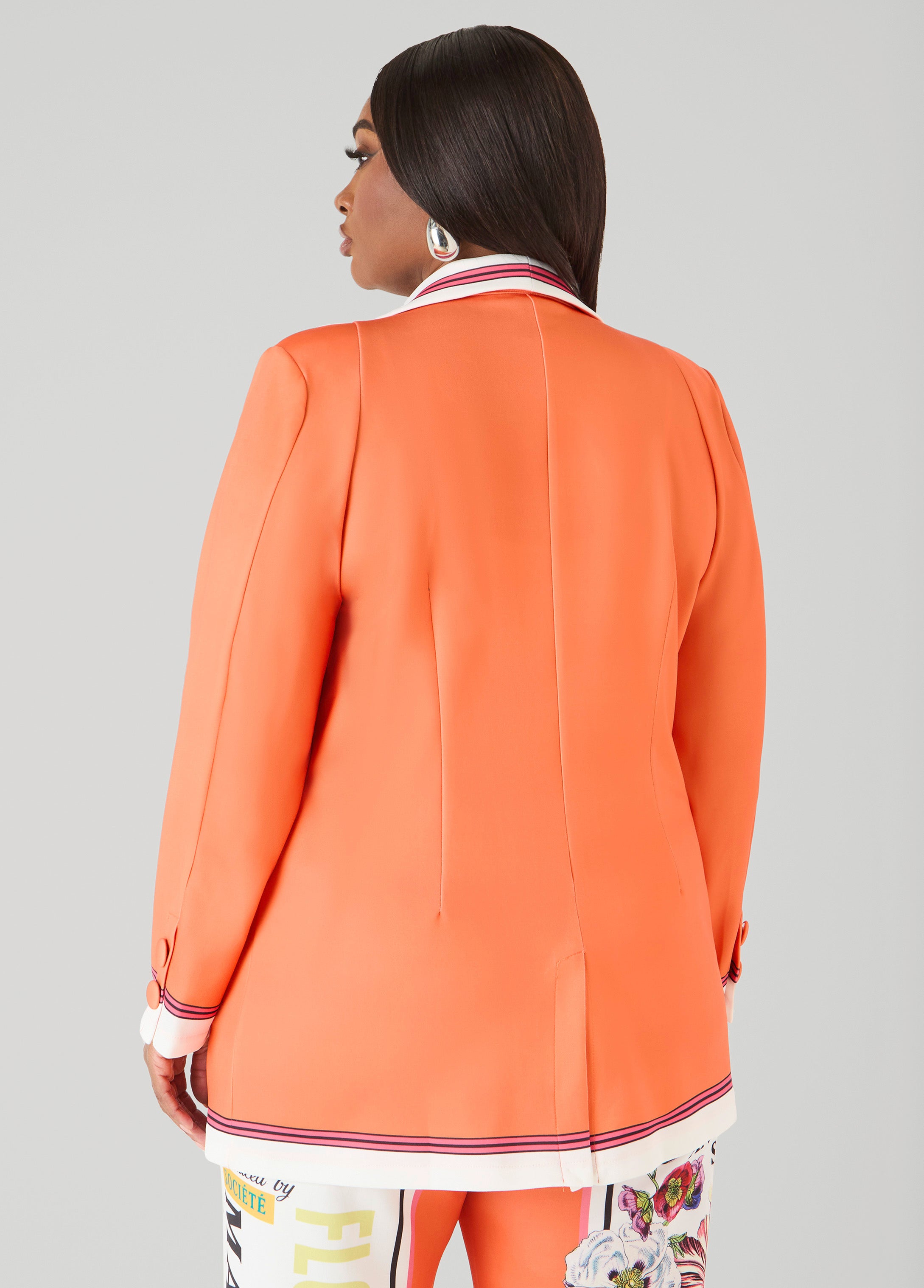 Clean, structured and pulled together. This scuba blazer with striped trims completes the look with the matching pants.