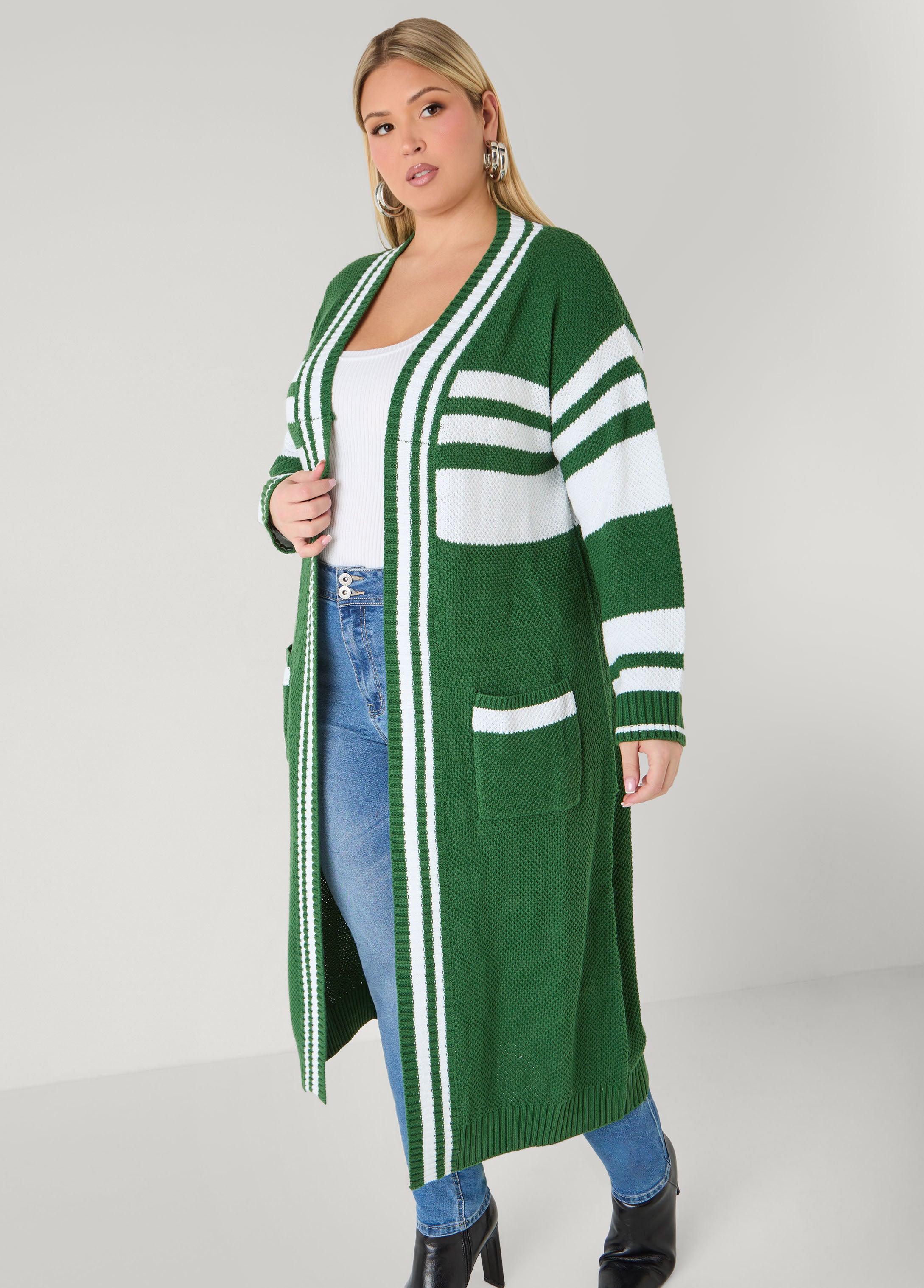 Stripes give our open front cardigan collegiate appeal easy to layer for a studious look or lounge in for a day of binging.