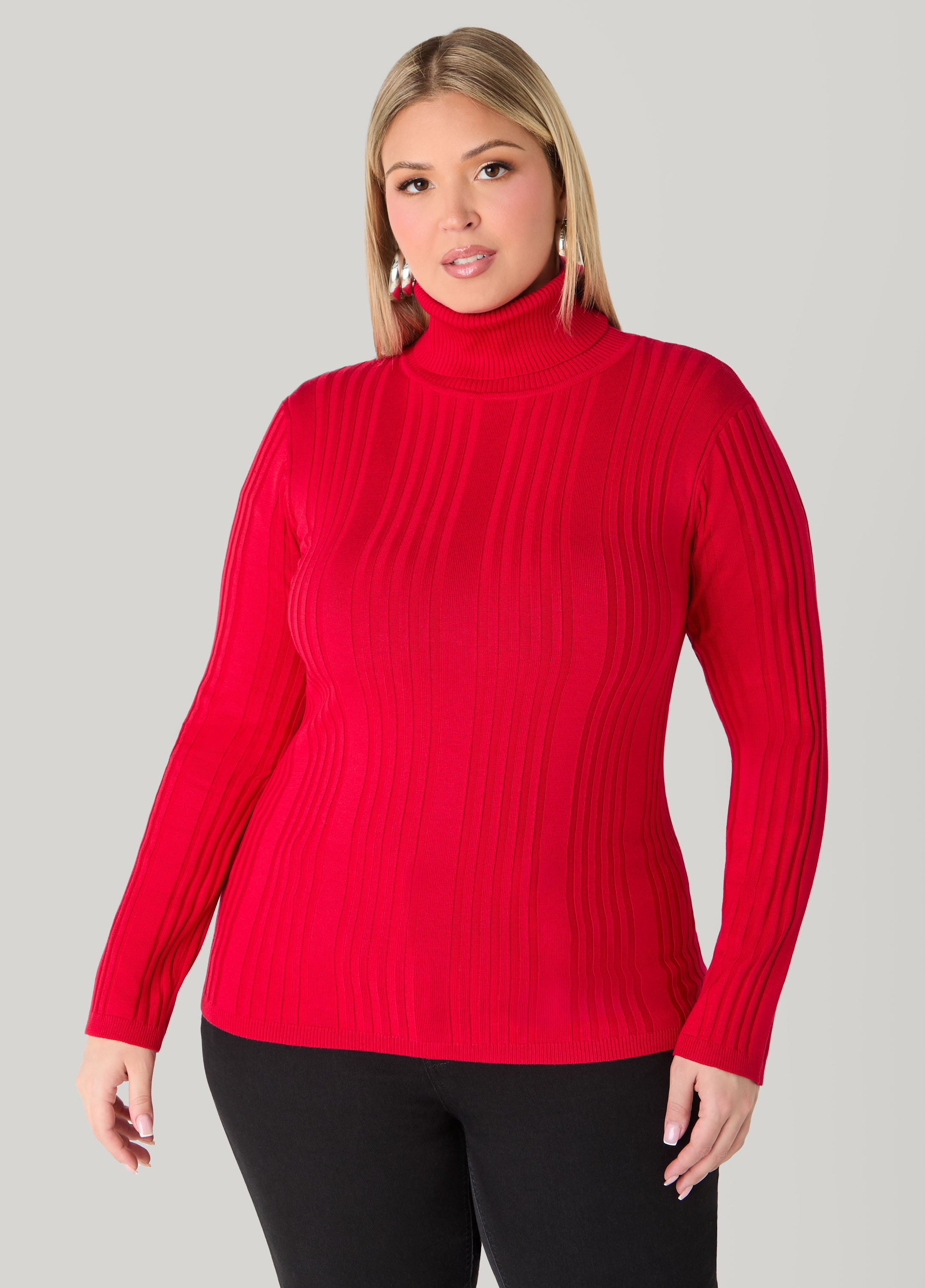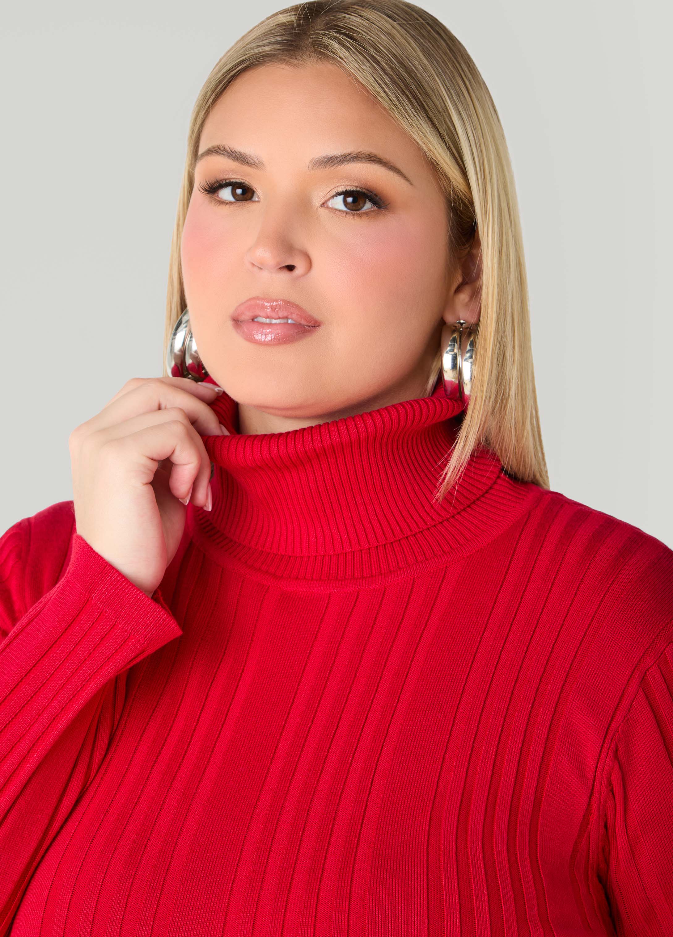Plus Size Ribbed Turtleneck Pullover Sweater