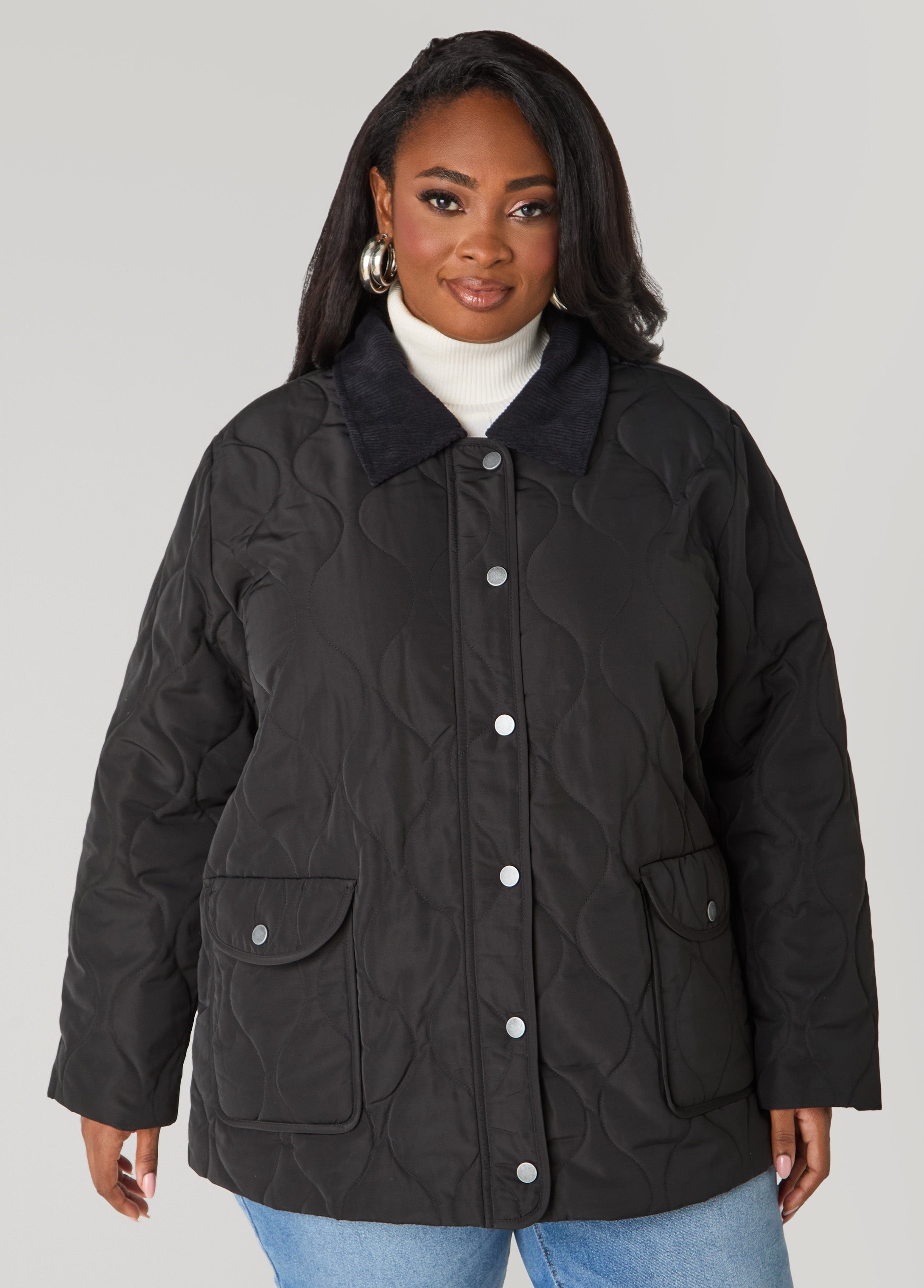 This quilted barn jacket with corduroy collar blends a classic cut with a current, modern vibe.