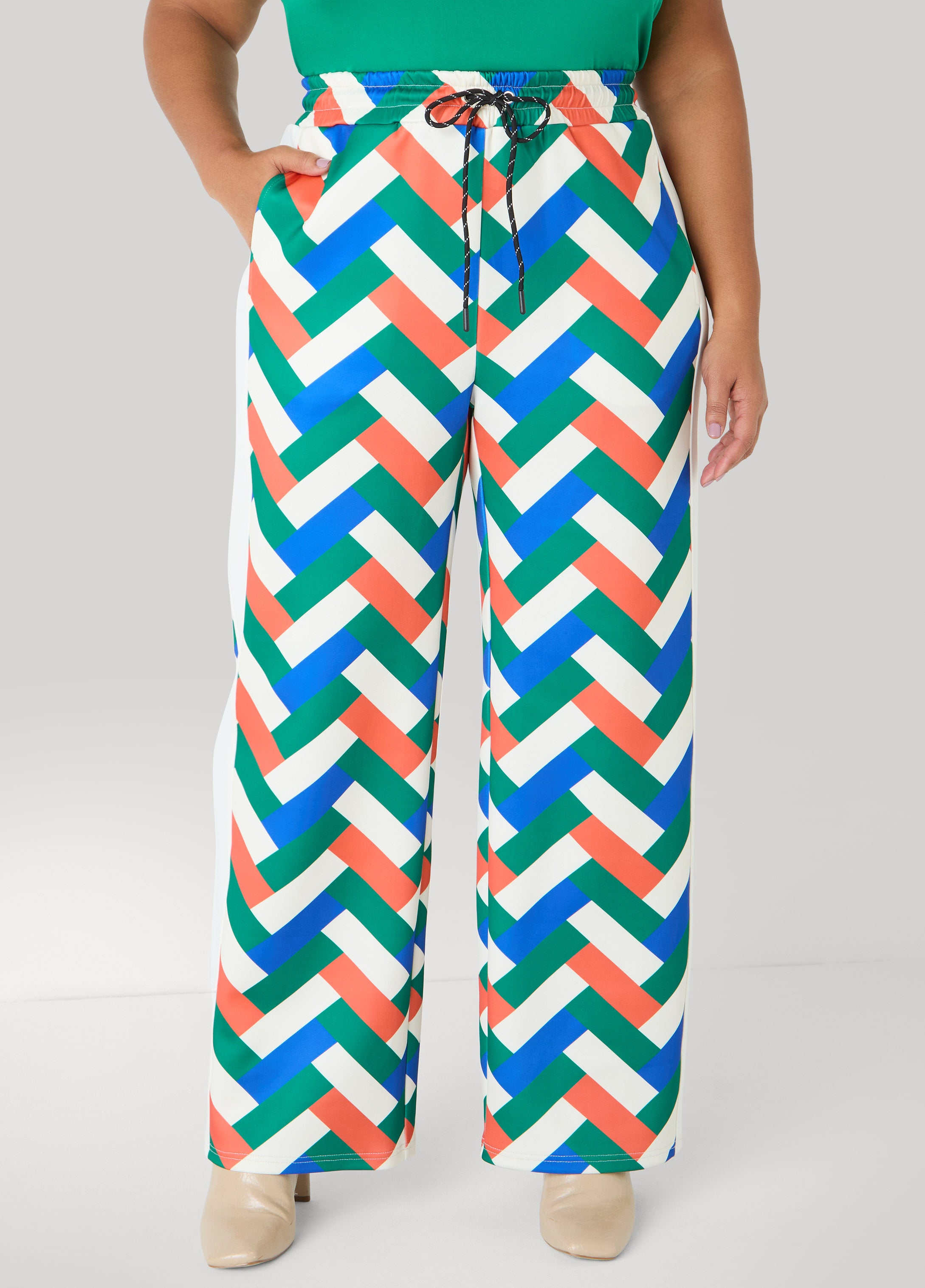 Wide legs and a wider range of style, feel the fashion (and comfort) of our geo print track pants made to match the equally chic jacket or be mixed into your collection of styles.