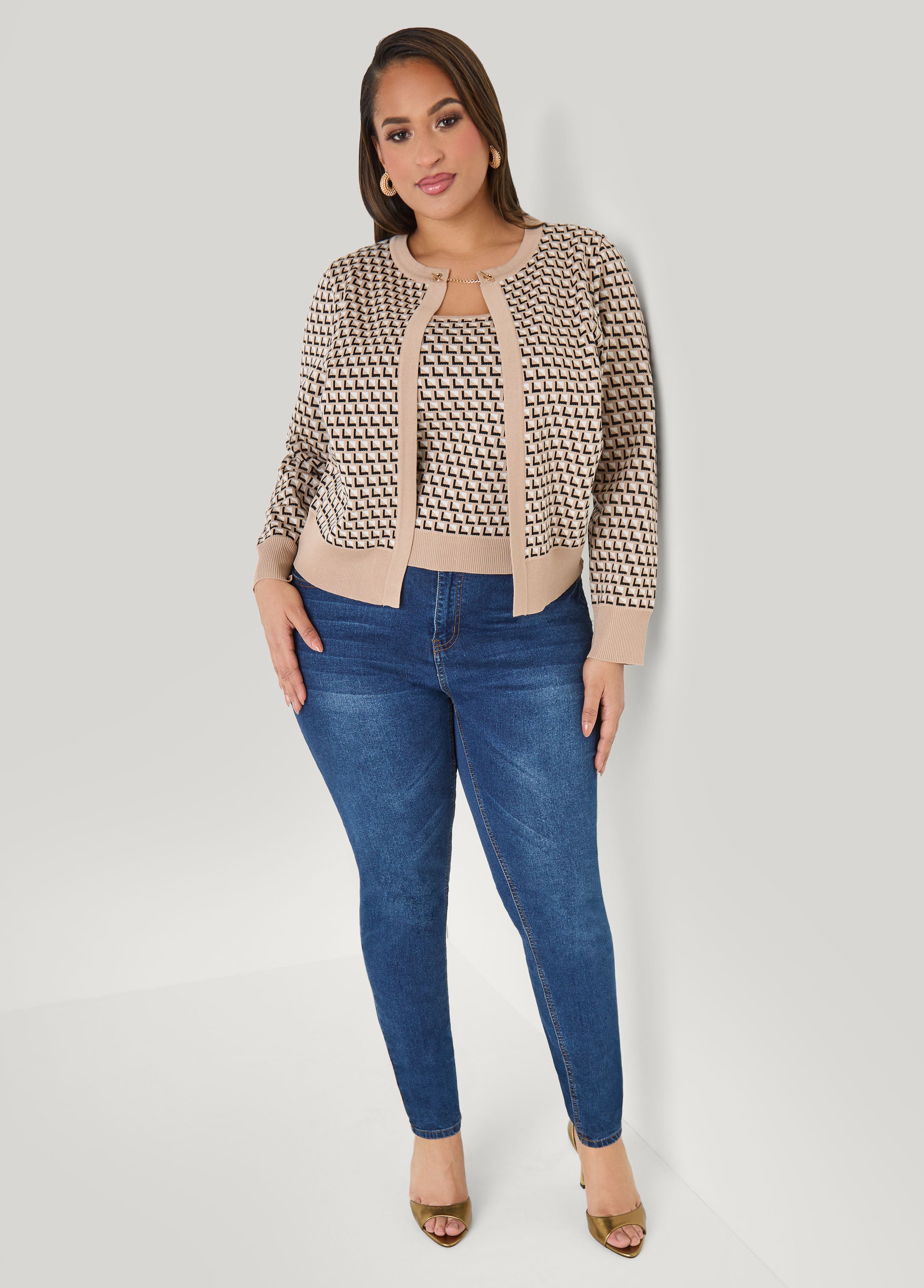 This intarsia-knit sweater is designed to look like a cardigan layered over a tank, all in one piece. Finished with toggle fastenings, it delivers a styled, layered effect without the extra bulk.