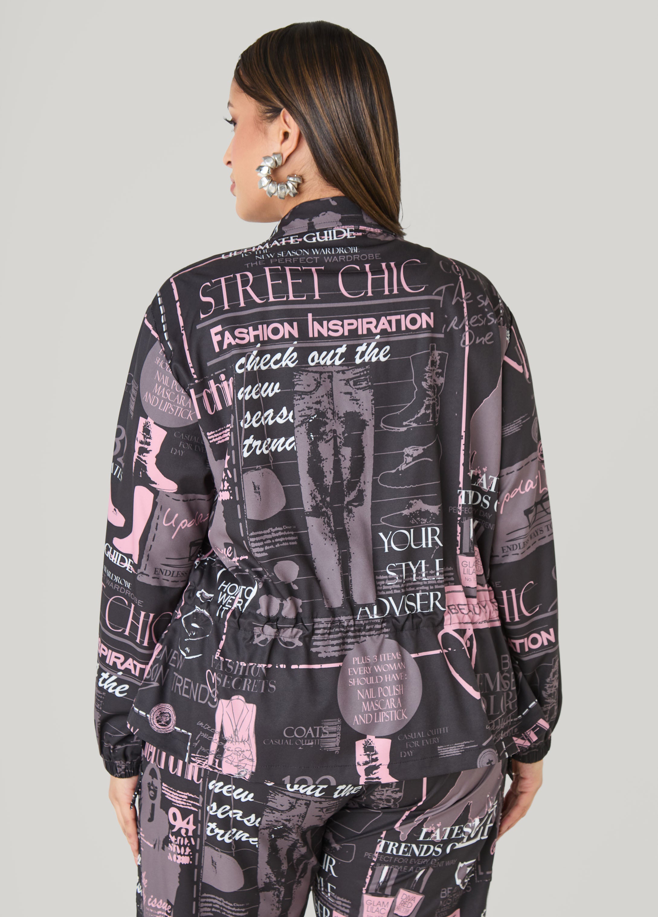 Extra, extra, read all about it! These newspaper print joggers are a moment with slant and cargo pockets, zip details and a drawstring waist made for the perfect fit. Pair with the matching jacket and serve the full look.