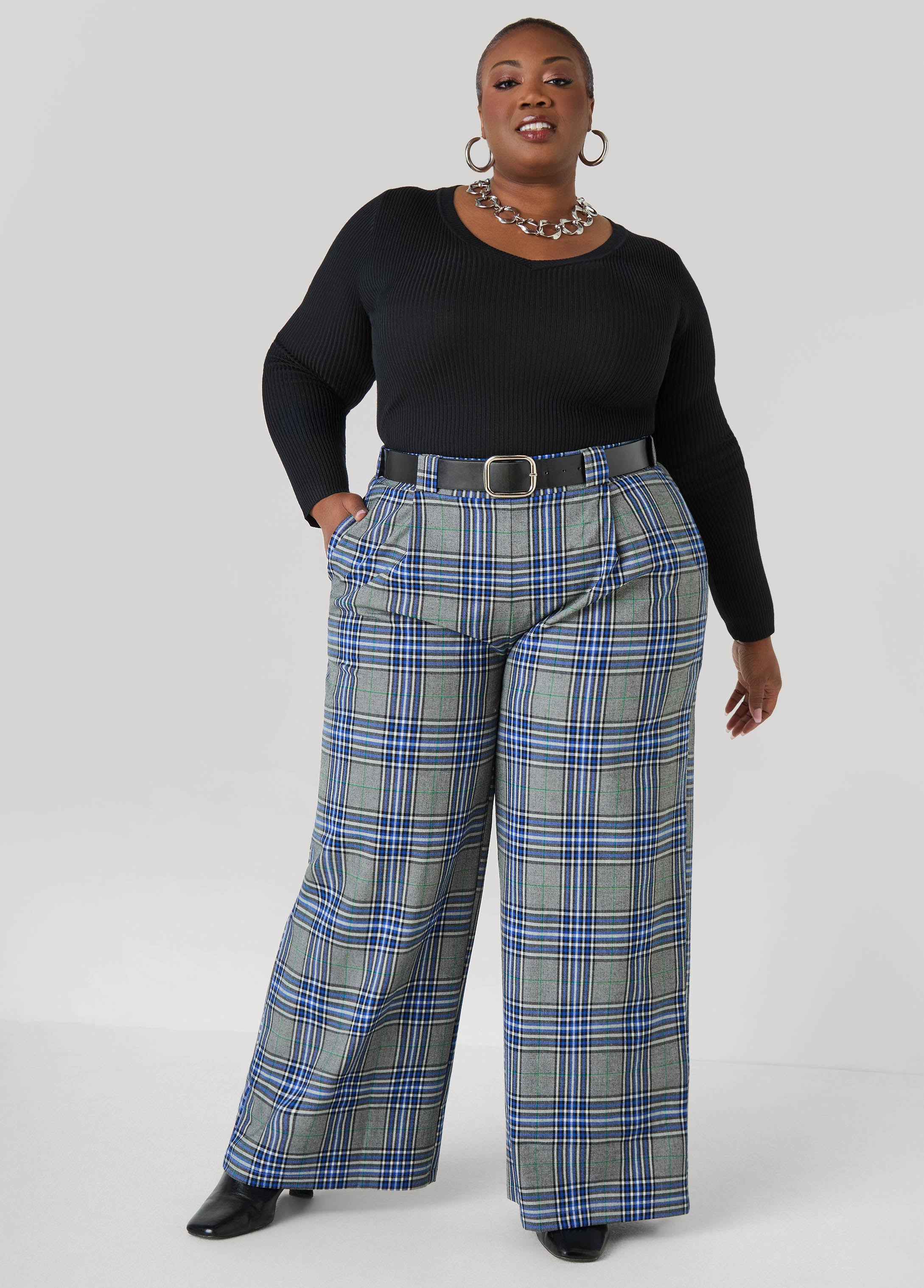 Clean lines, sharp plaid & a high-waist make these trousers built to balance business with being a chic boss. The wide-leg silhouette holds its shape with the detachable faux leather belt that snatches (or not) for a completely stylish fit.