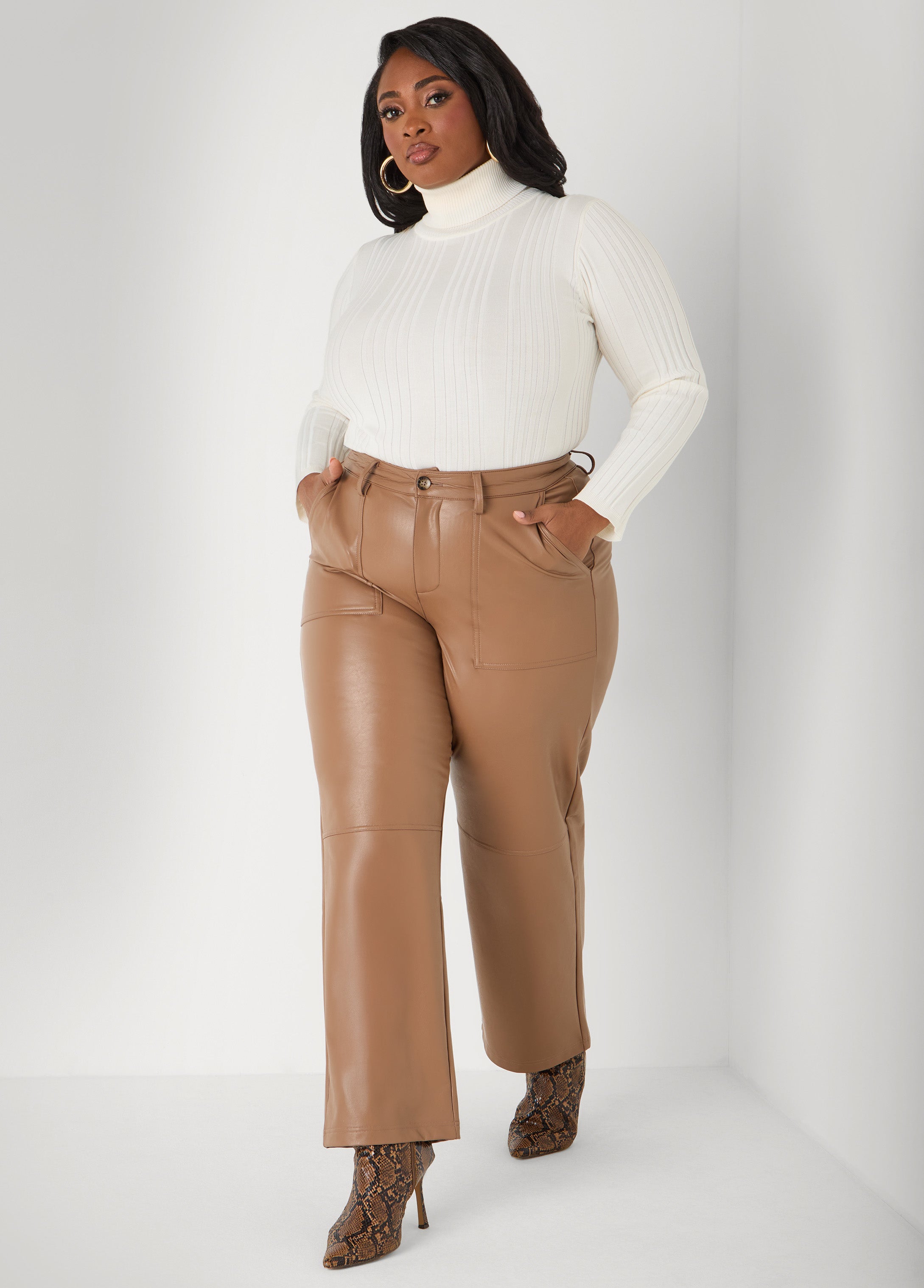 Serve a fierce leather look in our faux leather trousers cut into a straight-leg with seam detailing for bonus texture & style.
