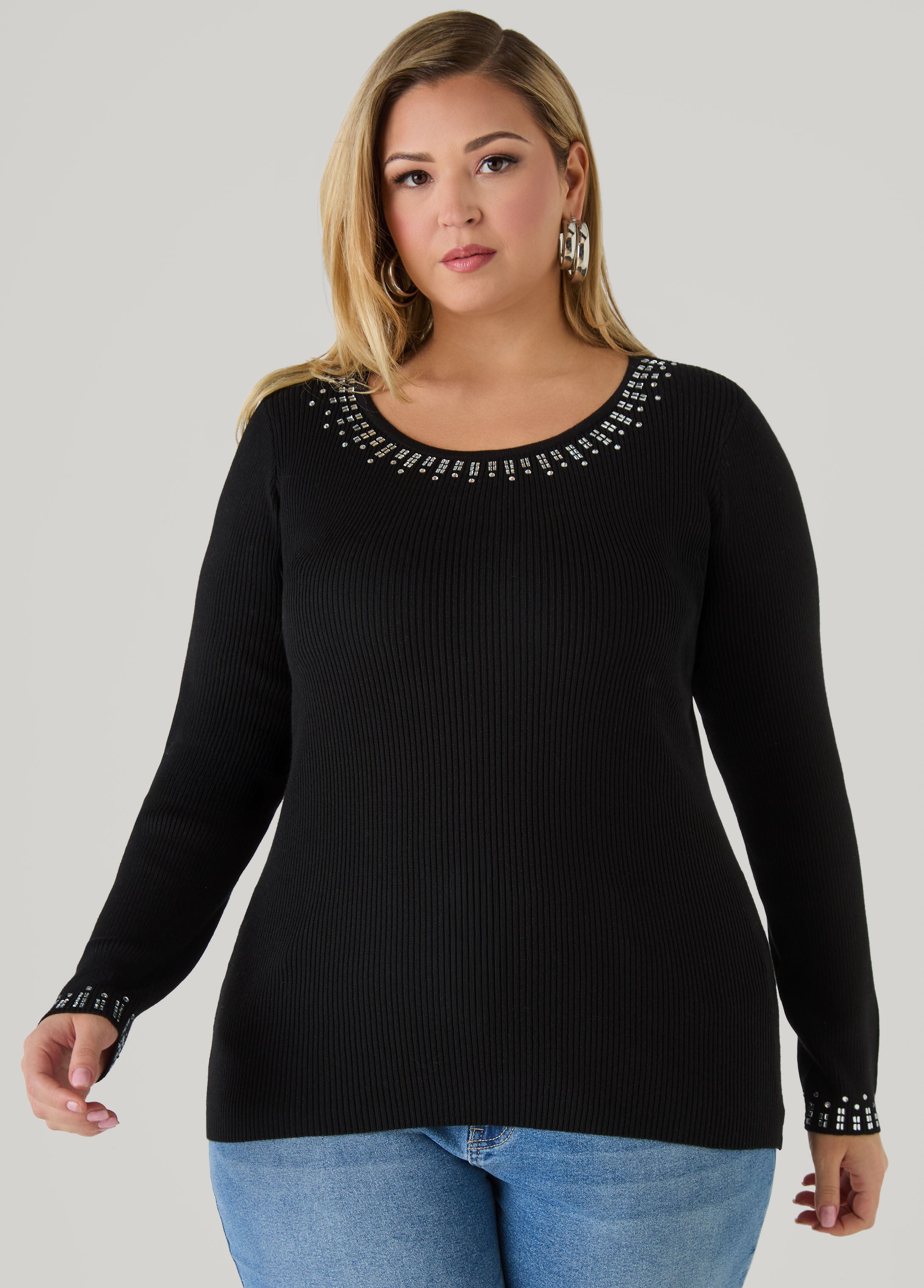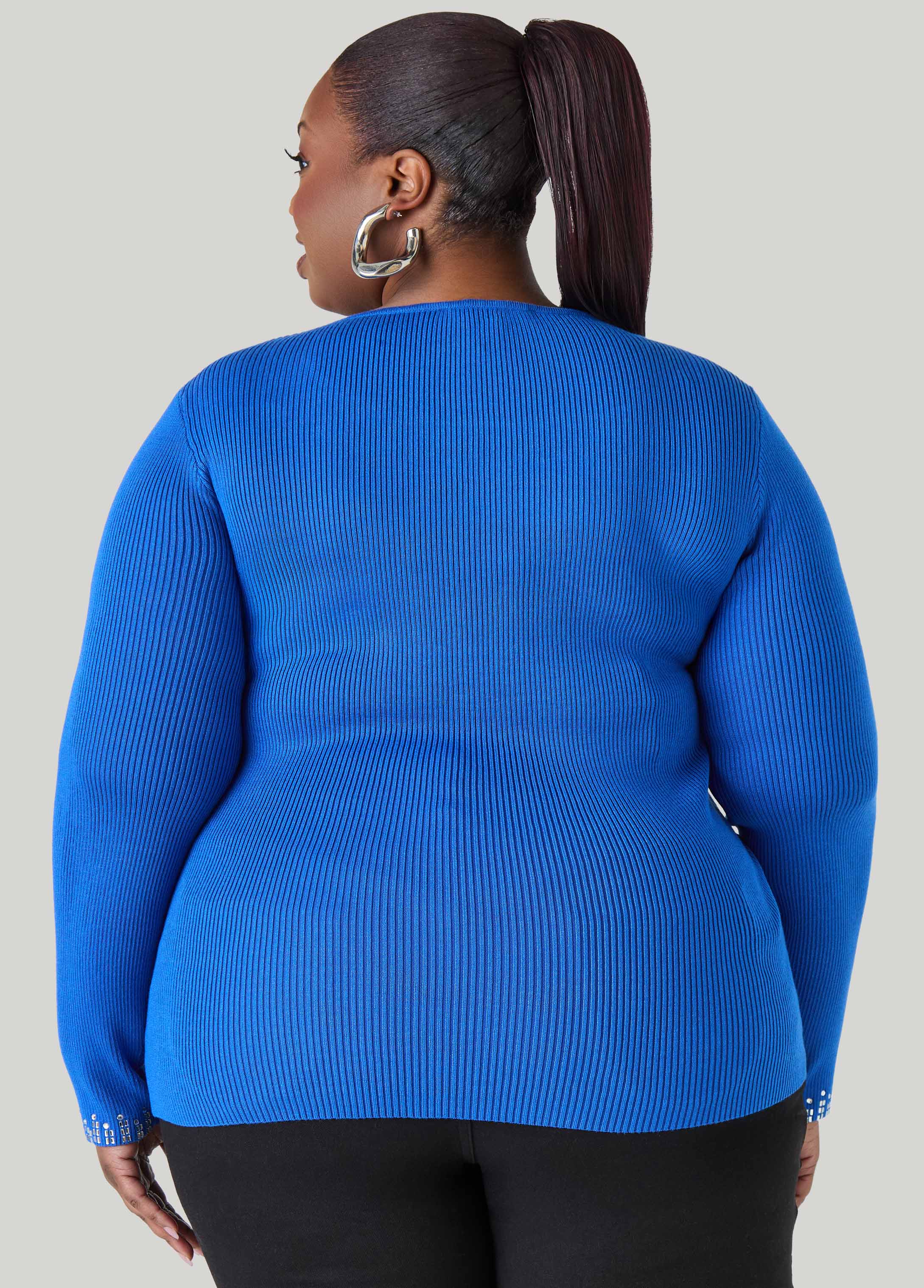 Plus Size Crystal Ribbed Knit Sweater