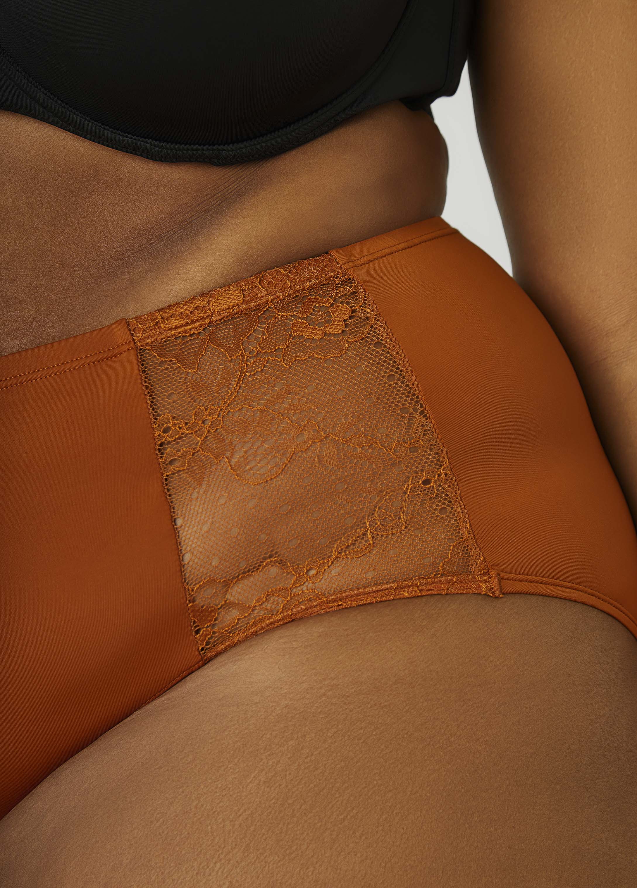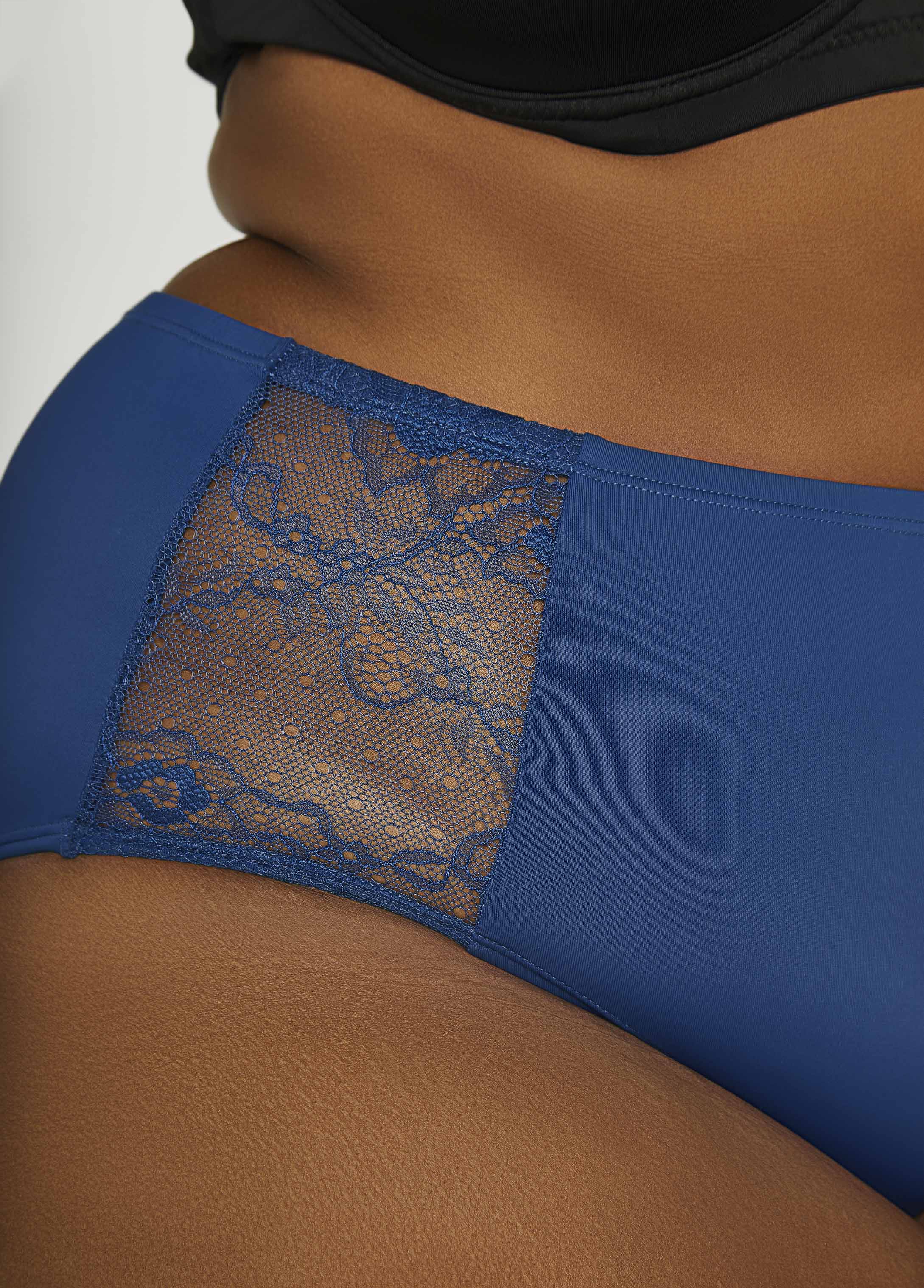 Microfiber briefs mix lace panels into the design that’s as sleek as it is sexy.