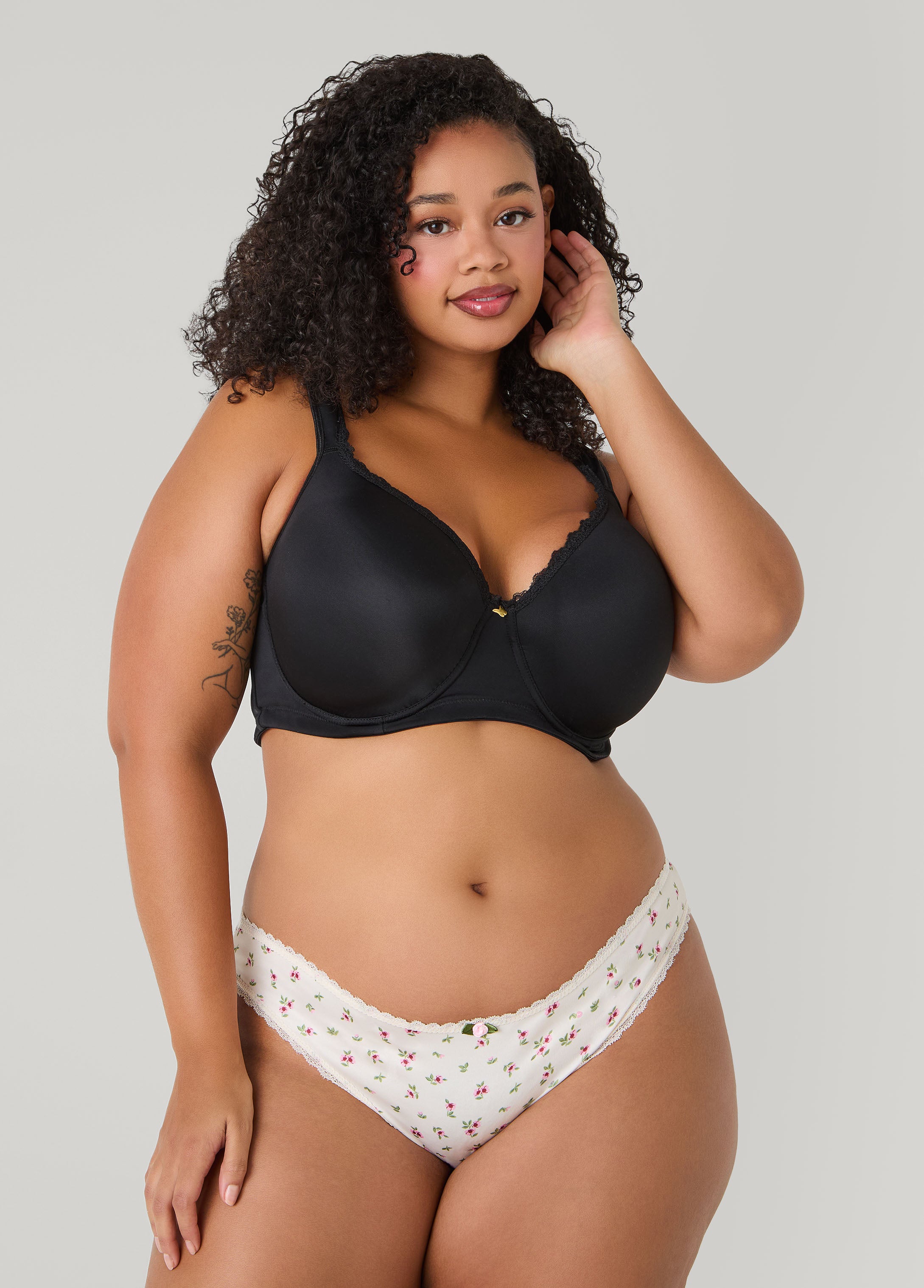 A little lace, a little romance. This three-pack of bikini panties mixes floral prints and a solid style, finished with delicate trims and tiny rosettes for that just-right feminine touch.