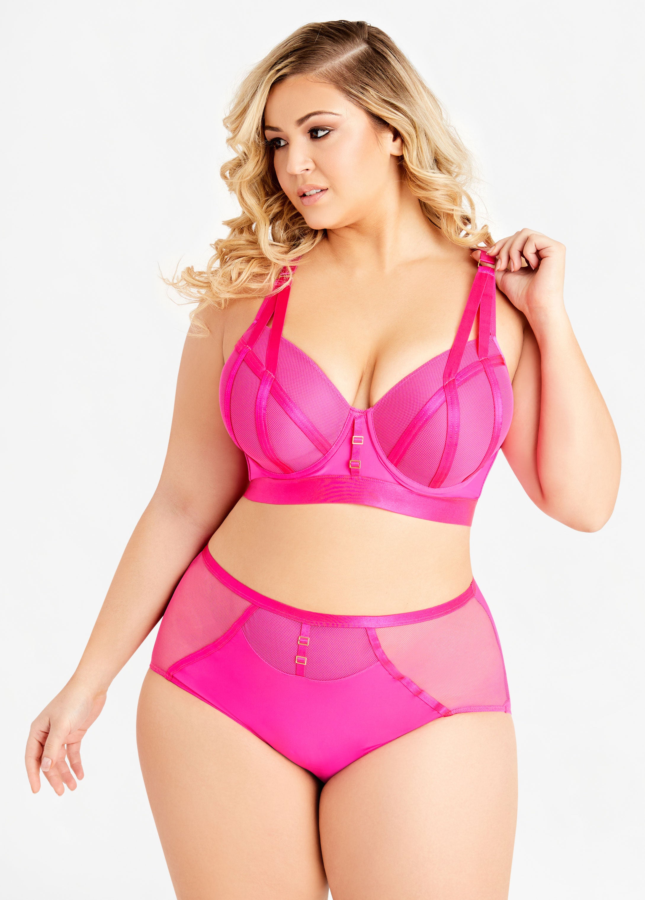 Your silhouette takes center stage in this flattering, mesh-enhanced plus size bra and panty duet from Ashley Stewart. (Sold separately.)