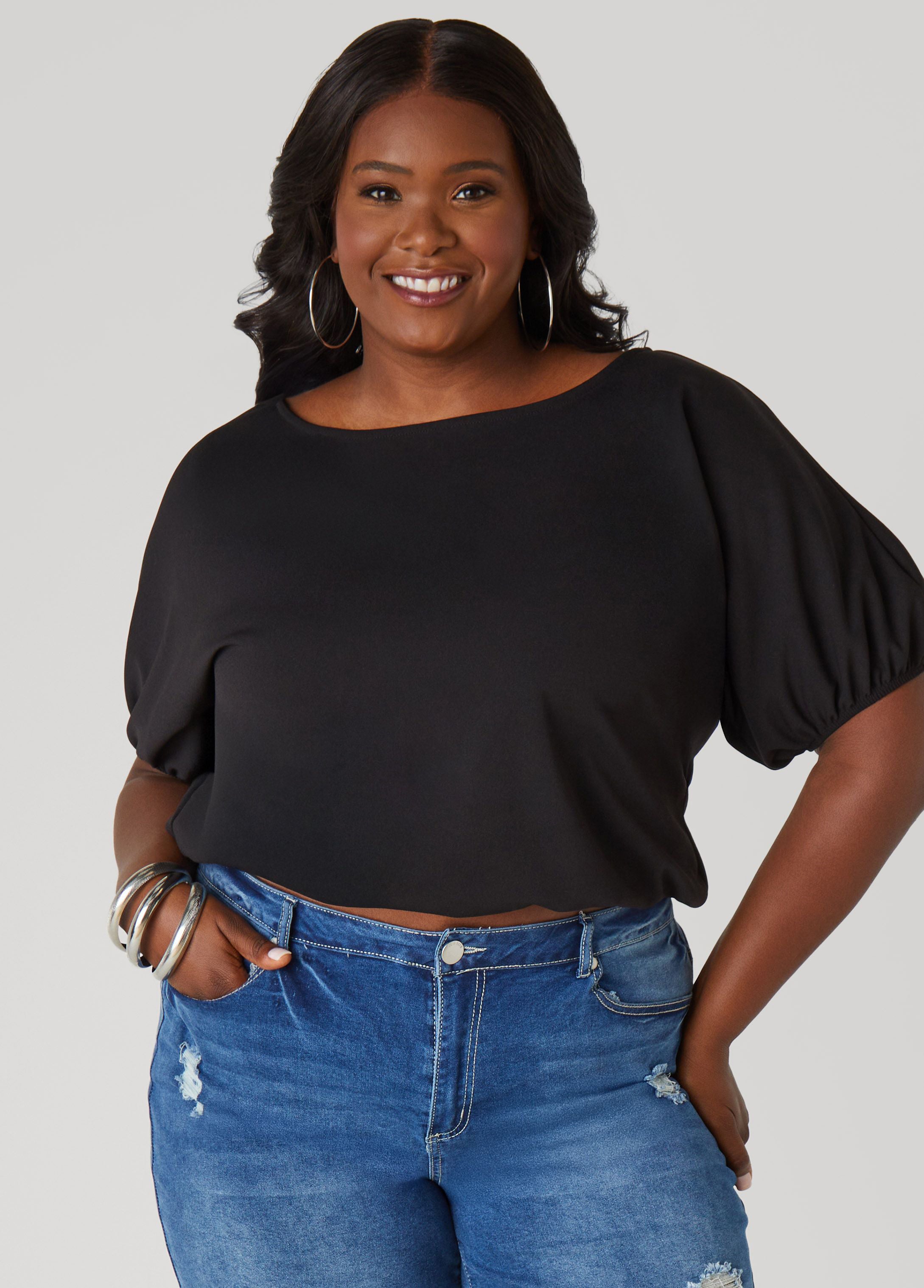 Fashion bubbles up into our very cutesy, very demure crepe crop top with a bubble fit & elbow-length balloon sleeves.