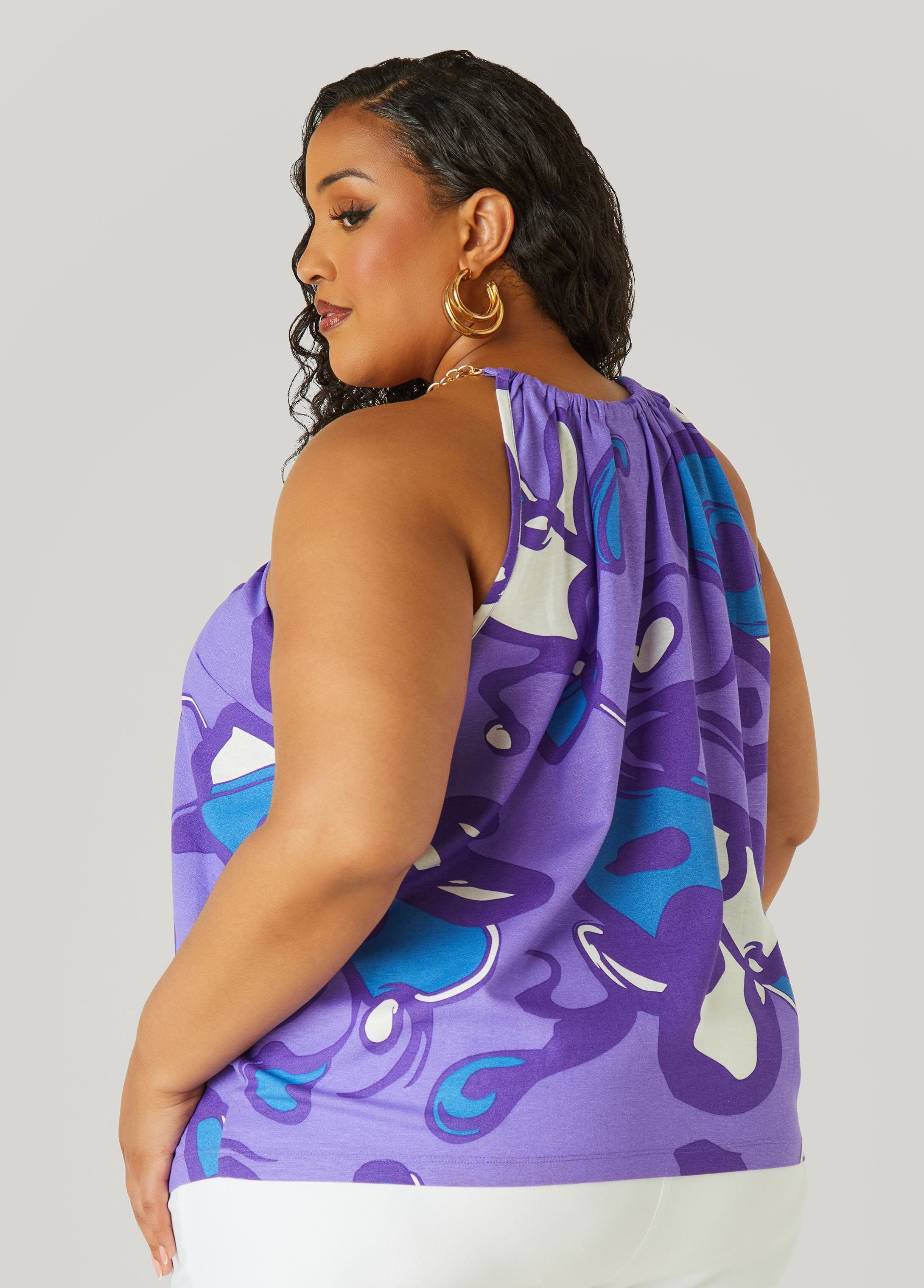 Catch all the sunny vibes in this printed poplin top with chain shoulder straps. Light, breezy and just the right amount of sparkle to keep your summer style shining bright. Perfect for days that dance between casual and chic.