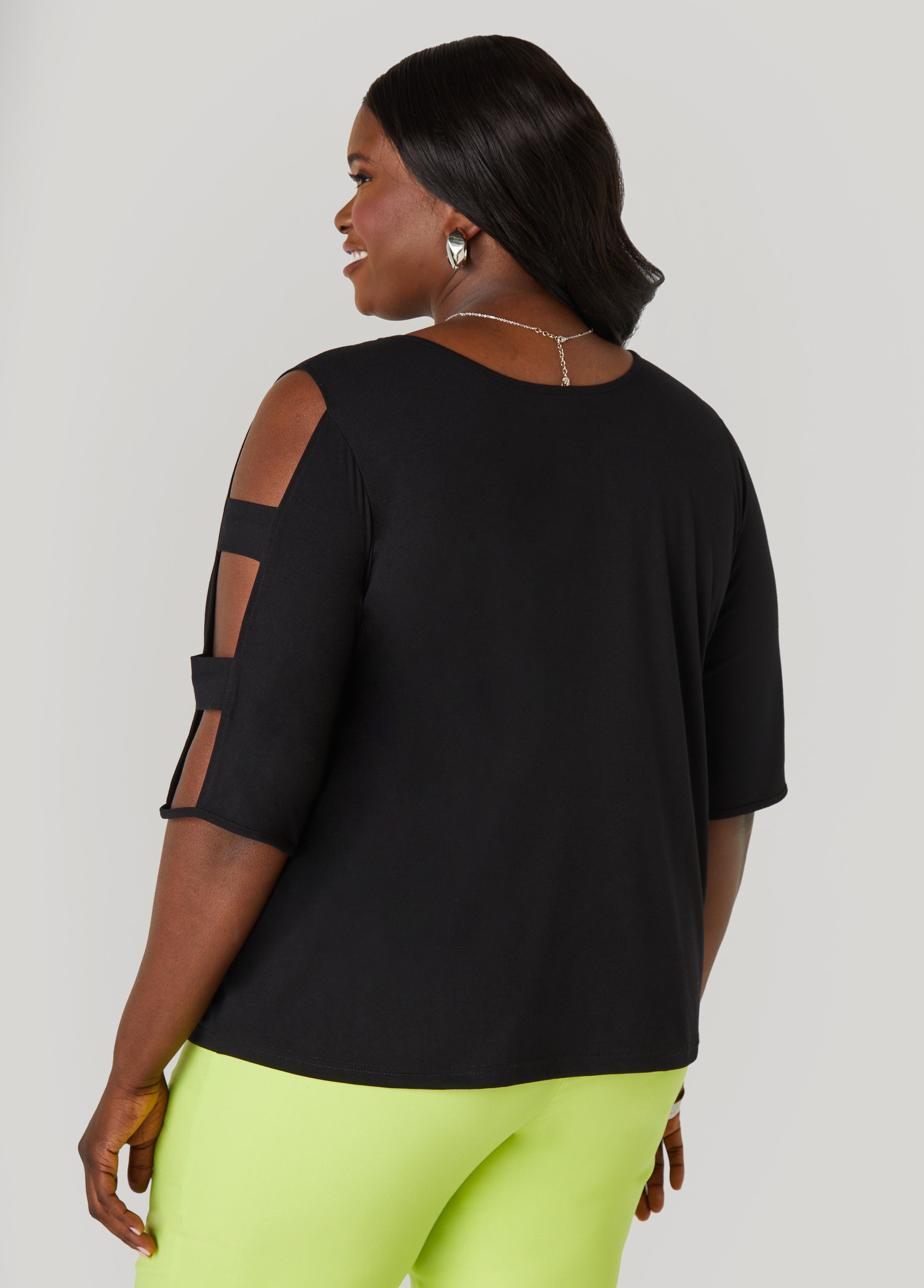 A refined take on contemporary style, this jersey top features an elegant V-neckline and artful cutouts along the sleeves. Designed in a supple fabric that drapes with ease, its slip-on silhouette offers comfort without compromise.