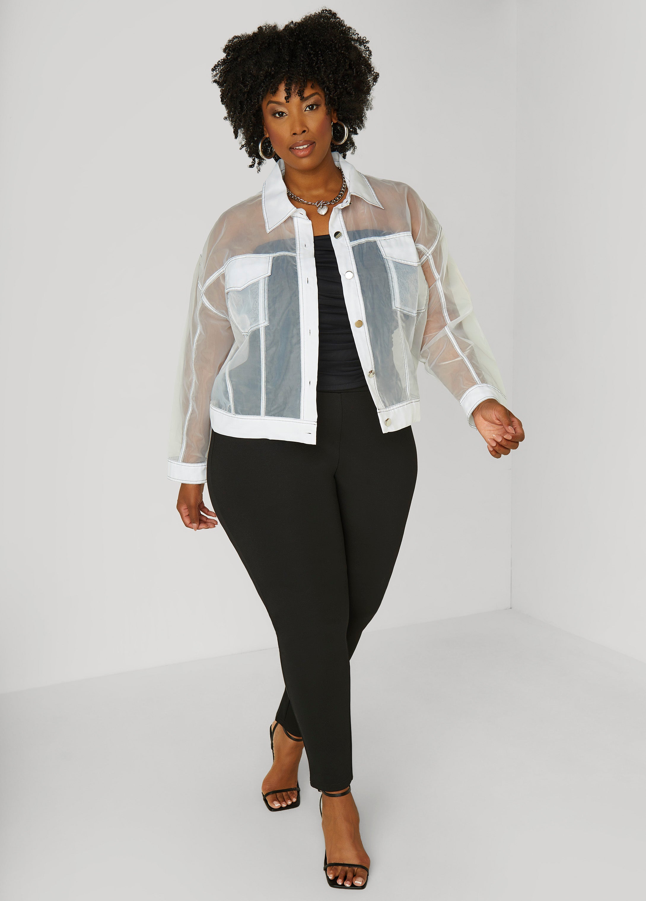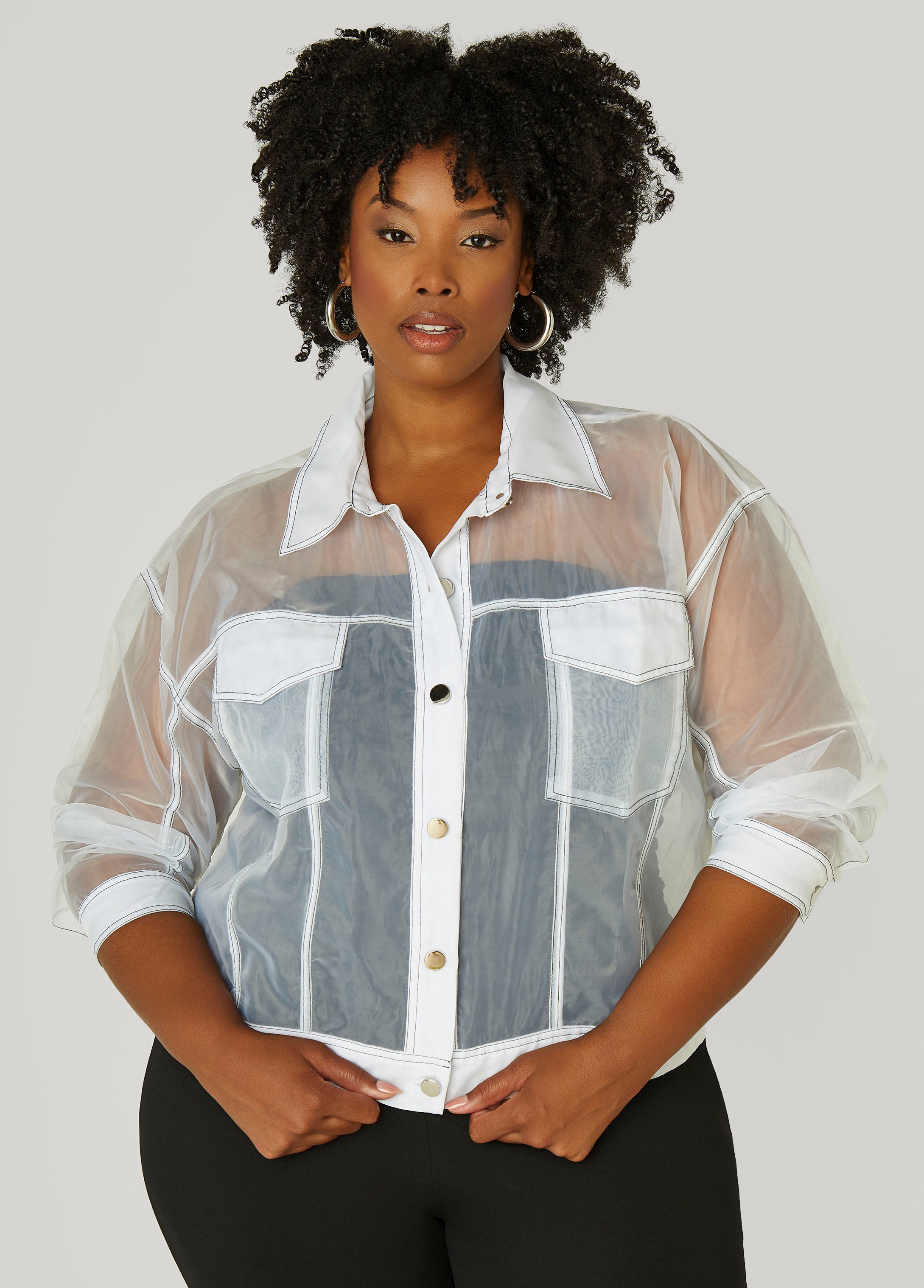 This organza trucker jacket is sheer trouble. Totally unlined, a little see-through and a whole lot of fun, it’s got flap pockets up top and button cuffs that keep it cute.