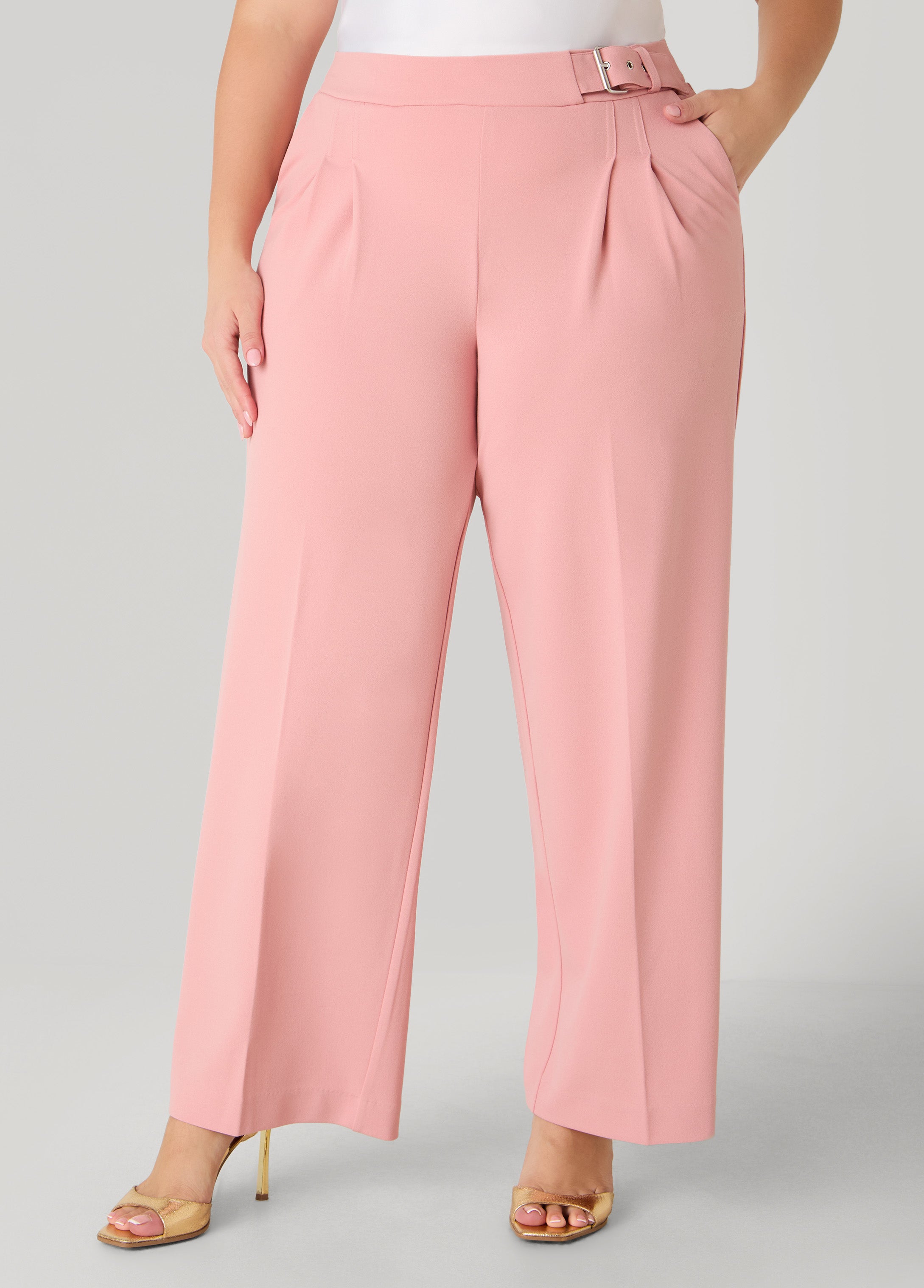 These crepe straight-leg pants are all about high-impact style, with sleek pleats, a buckle at the waist and an easy pull-on fit with a comfy stretch waistband. Rock them with the matching cropped blazer for a set that means business with a wink.