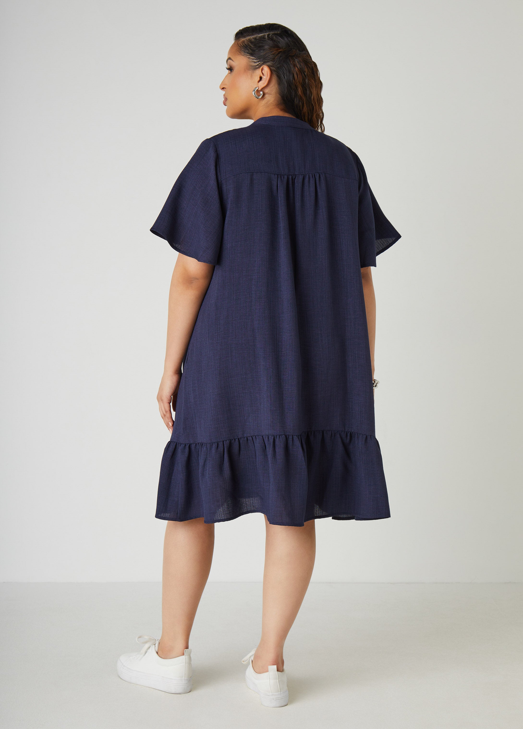 Refresh your wardrobe with this slub-woven shirtdress. Featuring a patch pocket, two slit pockets, and a flounced hem, this dress combines practicality with effortless style. Ideal for both casual outings and relaxed weekends, it offers comfort and versatility in one piece.