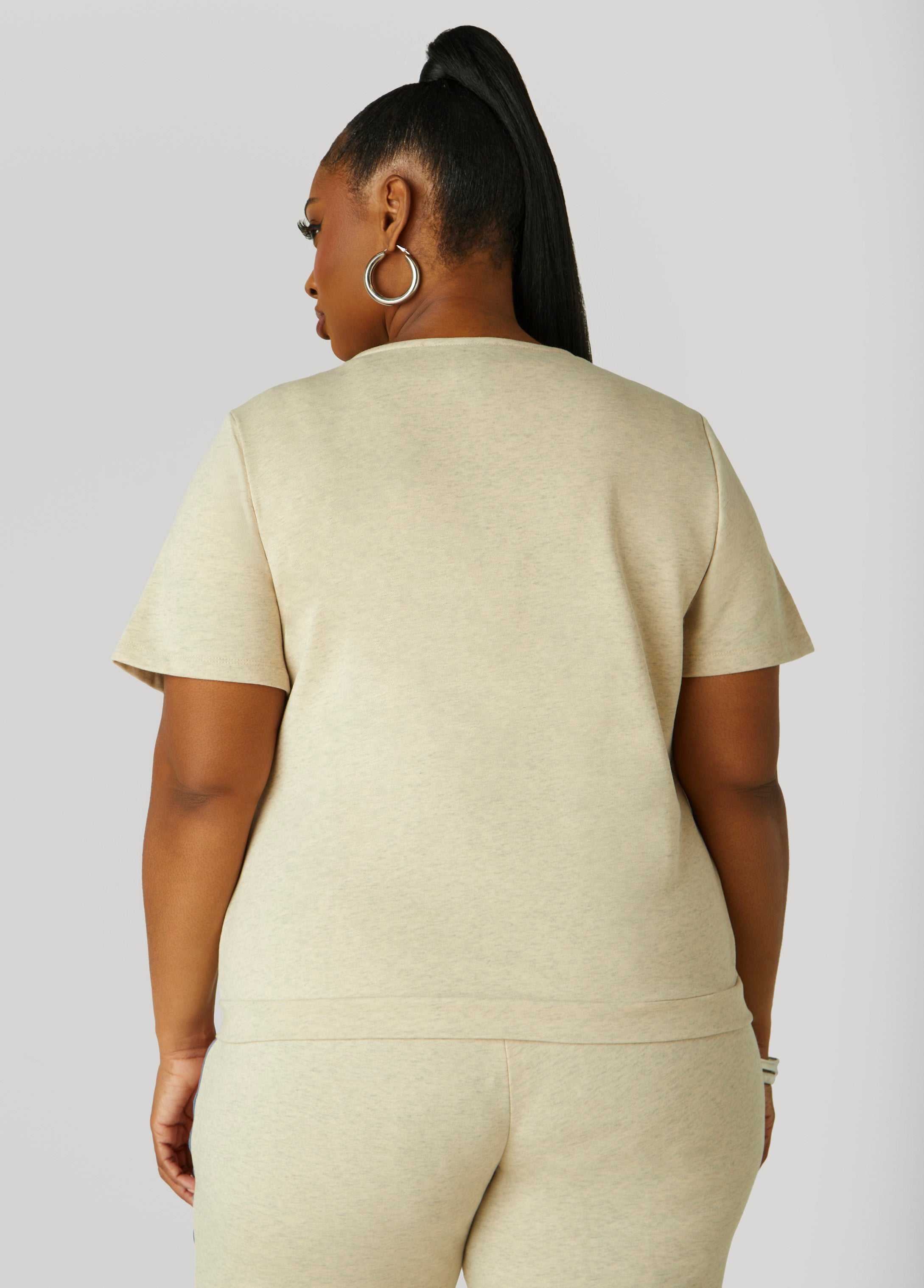 This marbled French terry jacket isn’t here to blend in. Rainbow striped trims pop against the swirled fabric, and short sleeves keep it fresh. Zip it up solo or pair it with the matching joggers when you’re feeling the full set energy.
