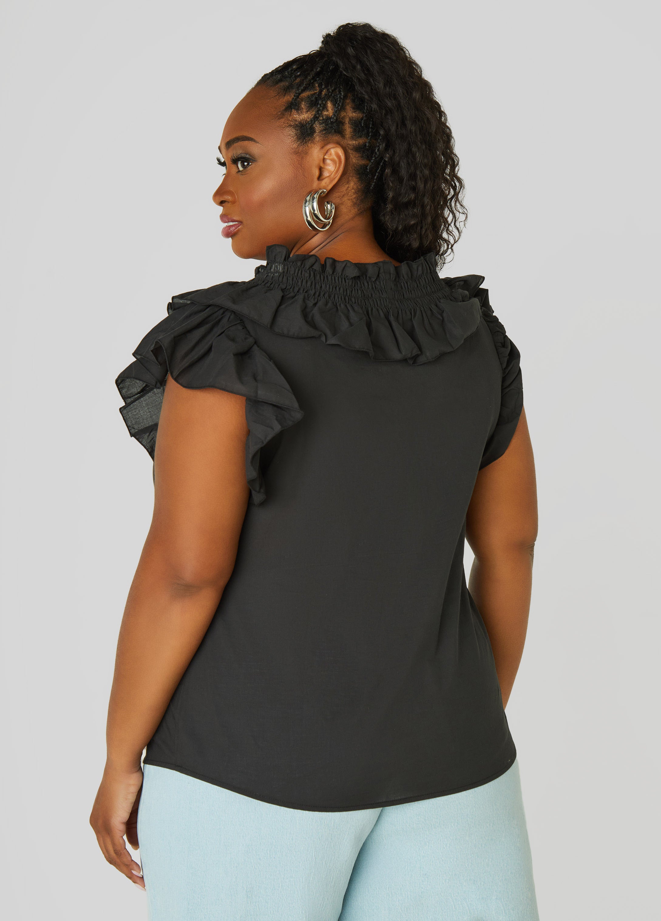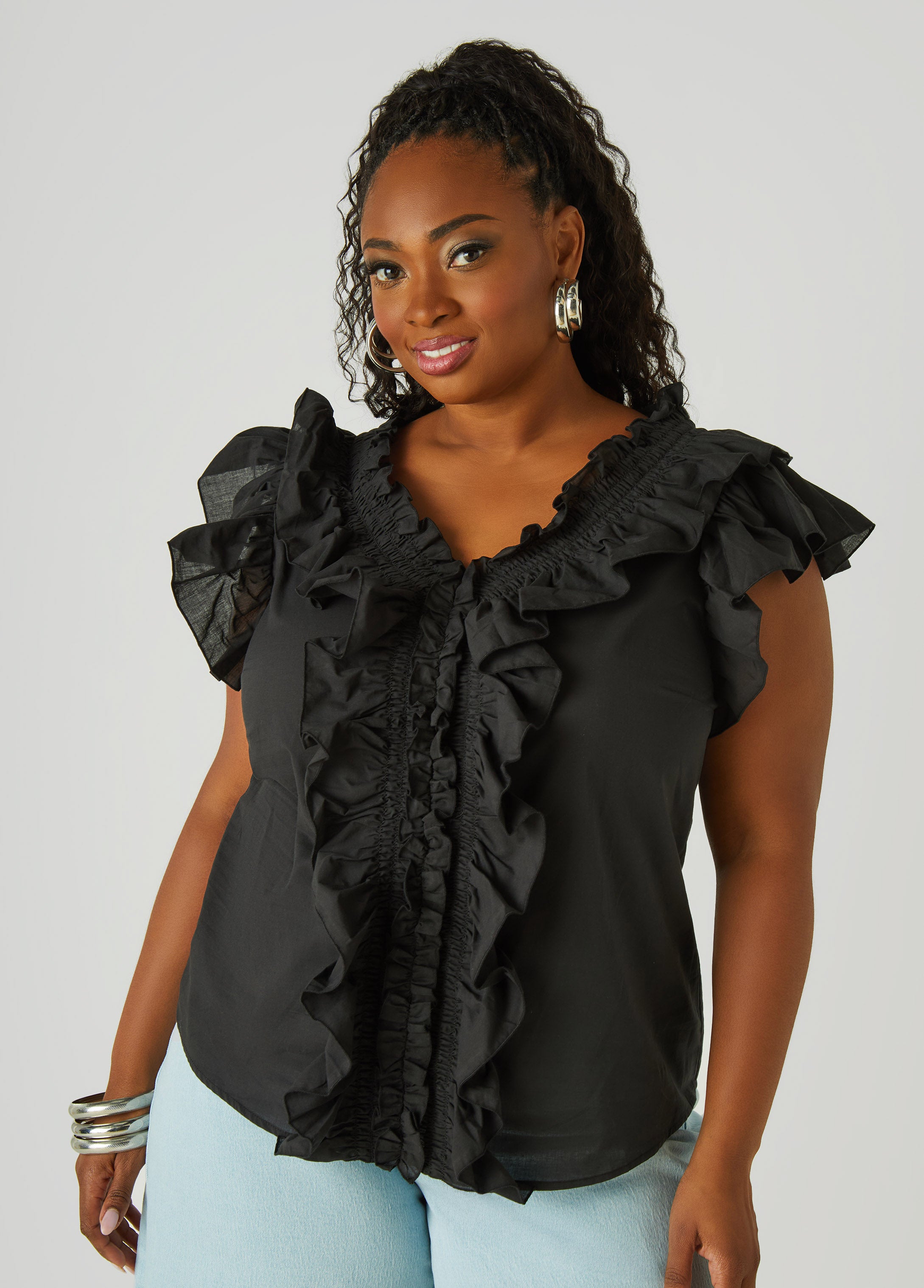Stay cool & collected in this cotton blouse with a flattering V-neck and layers of ruffles trims that bring a little extra to every moment.