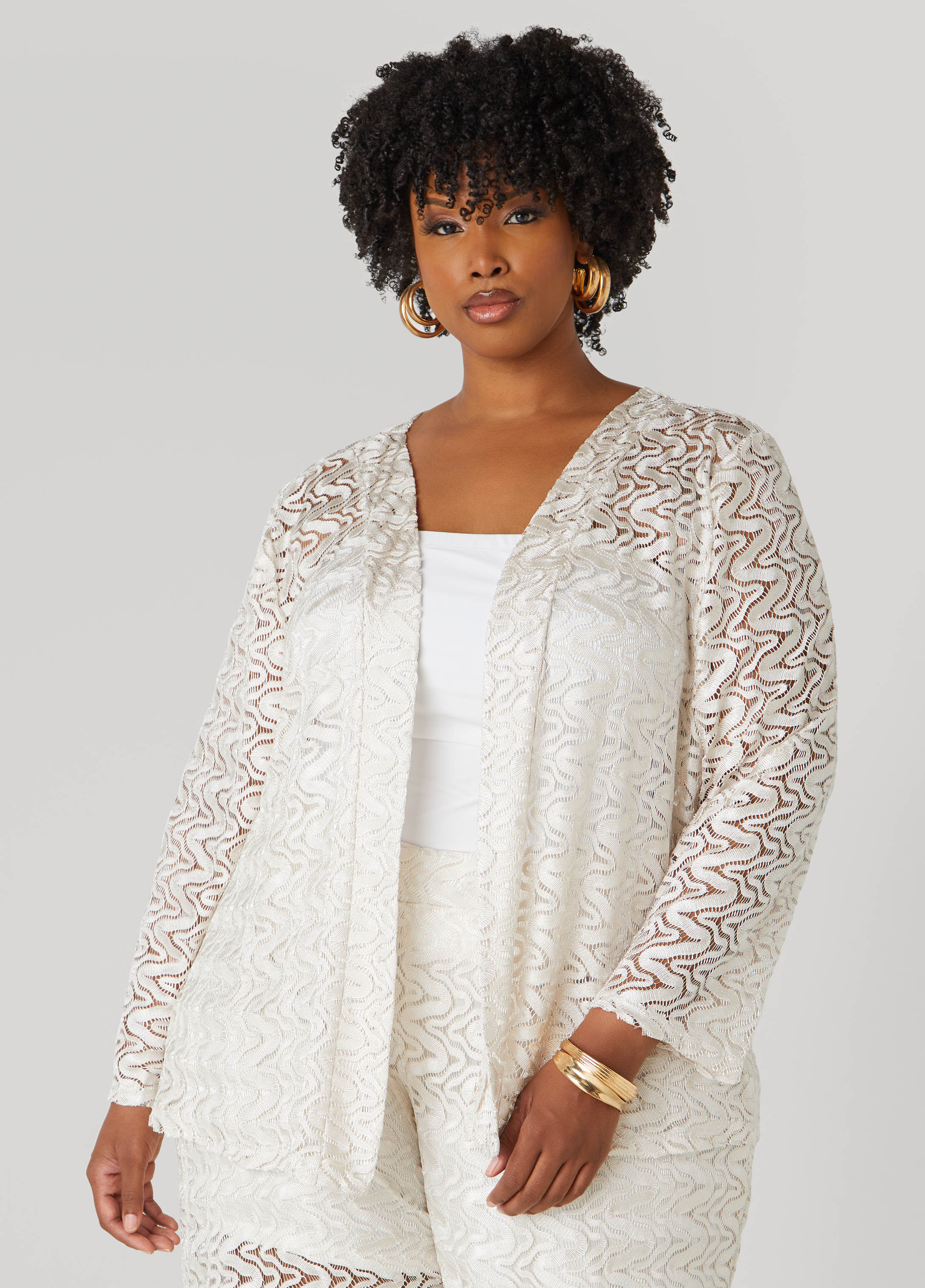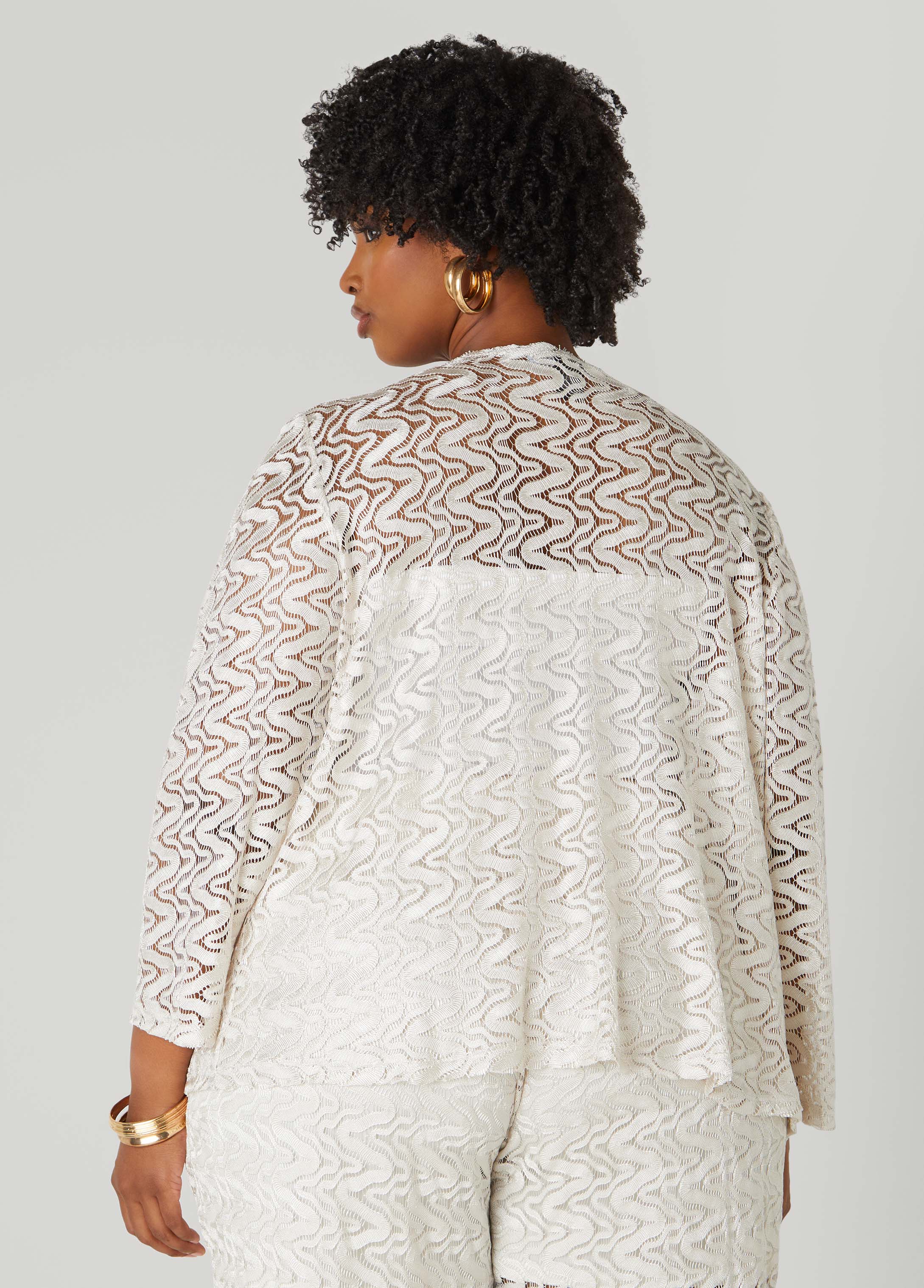 Our open-front jacket is crafted from delicate lace that skims without clinging. Unlined for a sheer, breezy feel, it’s an easy way to throw texture into the mix. Pair it with the matching pants for a look that’s laid-back but far from low-key.