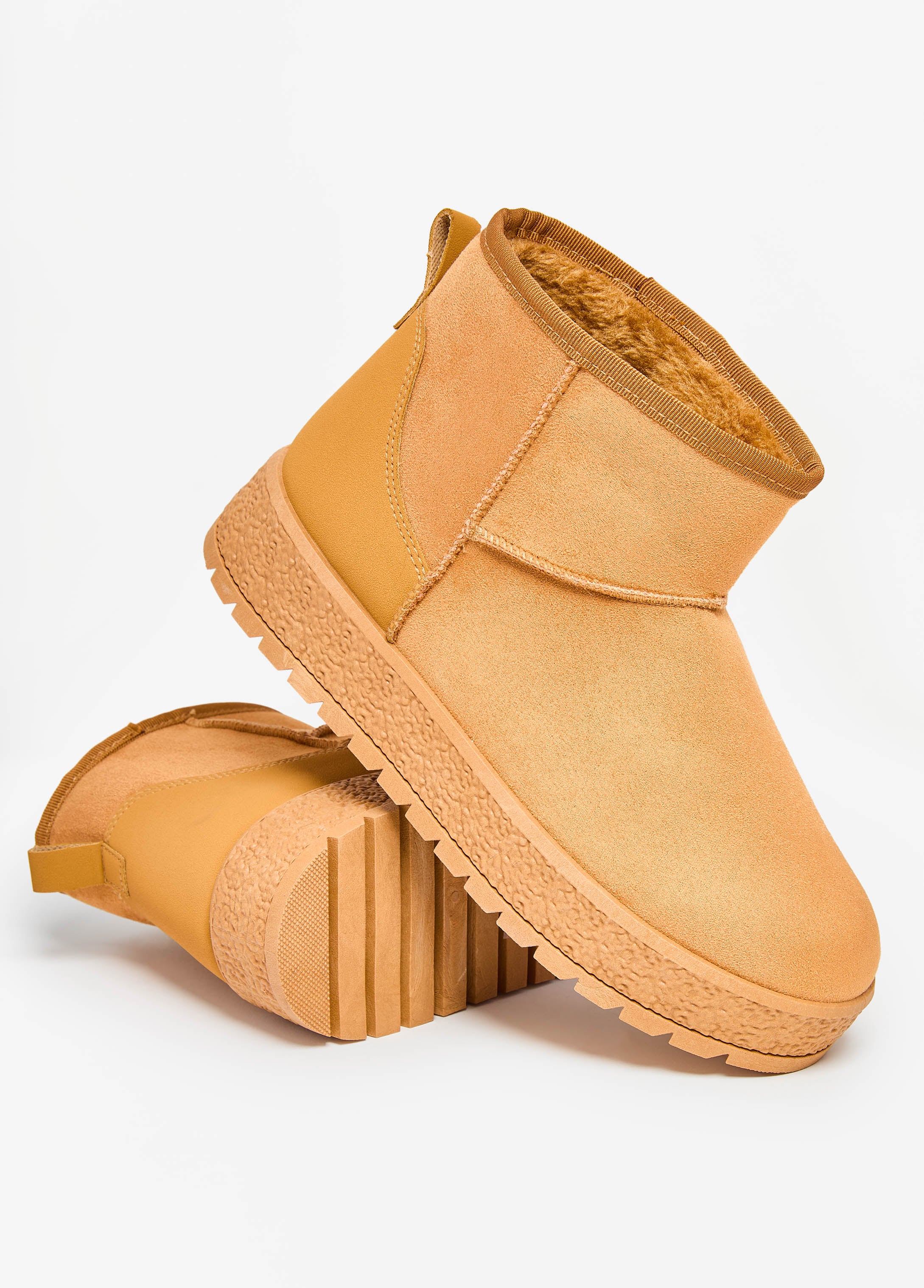 Step into cozy with these faux suede ankle boots, fully lined in plush faux fur and set on a chunky platform heel.