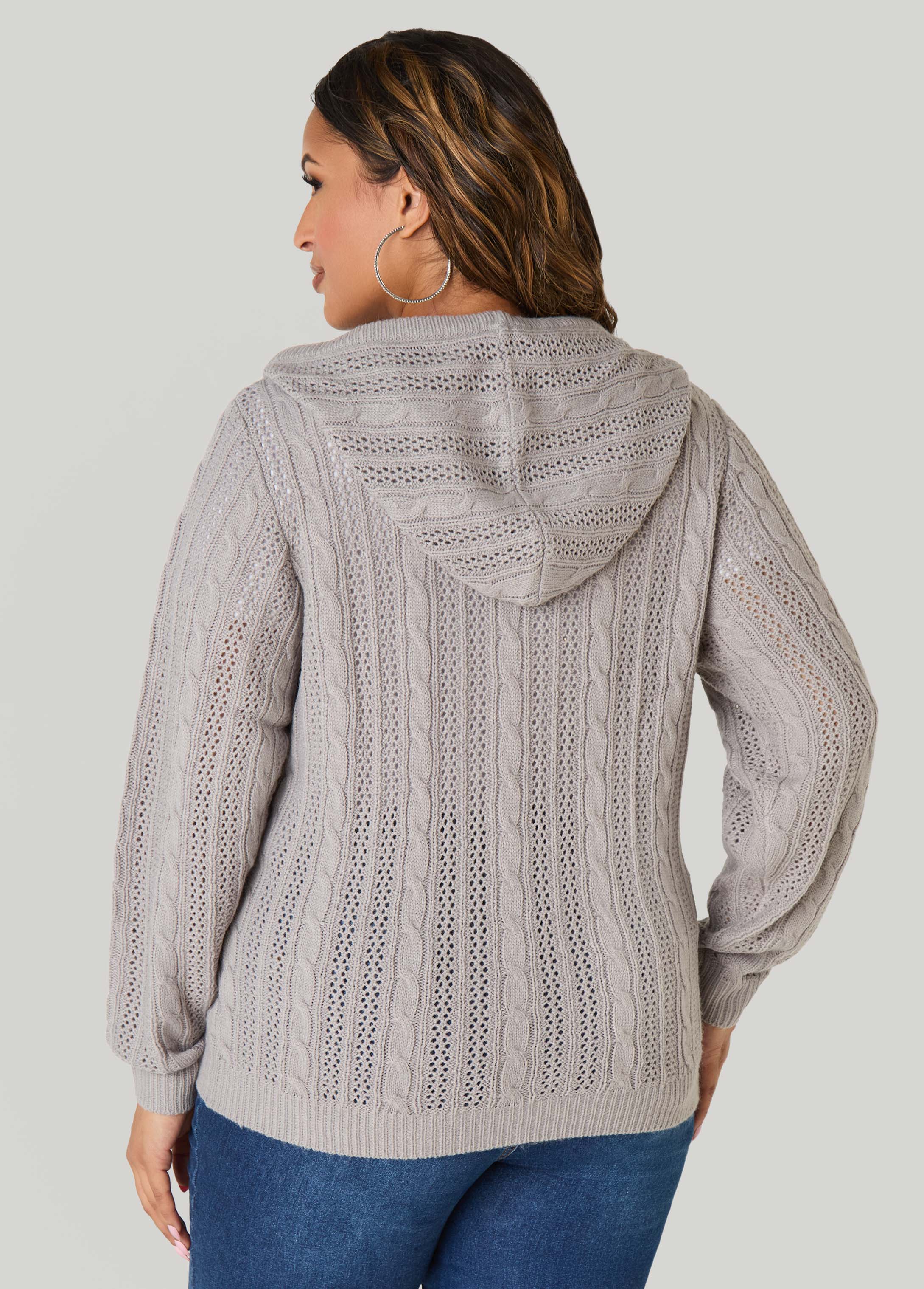 Cable knit brings dimension to a classic hoodie. The zip fastening and drawstring hood keep the look relaxed yet chic.
