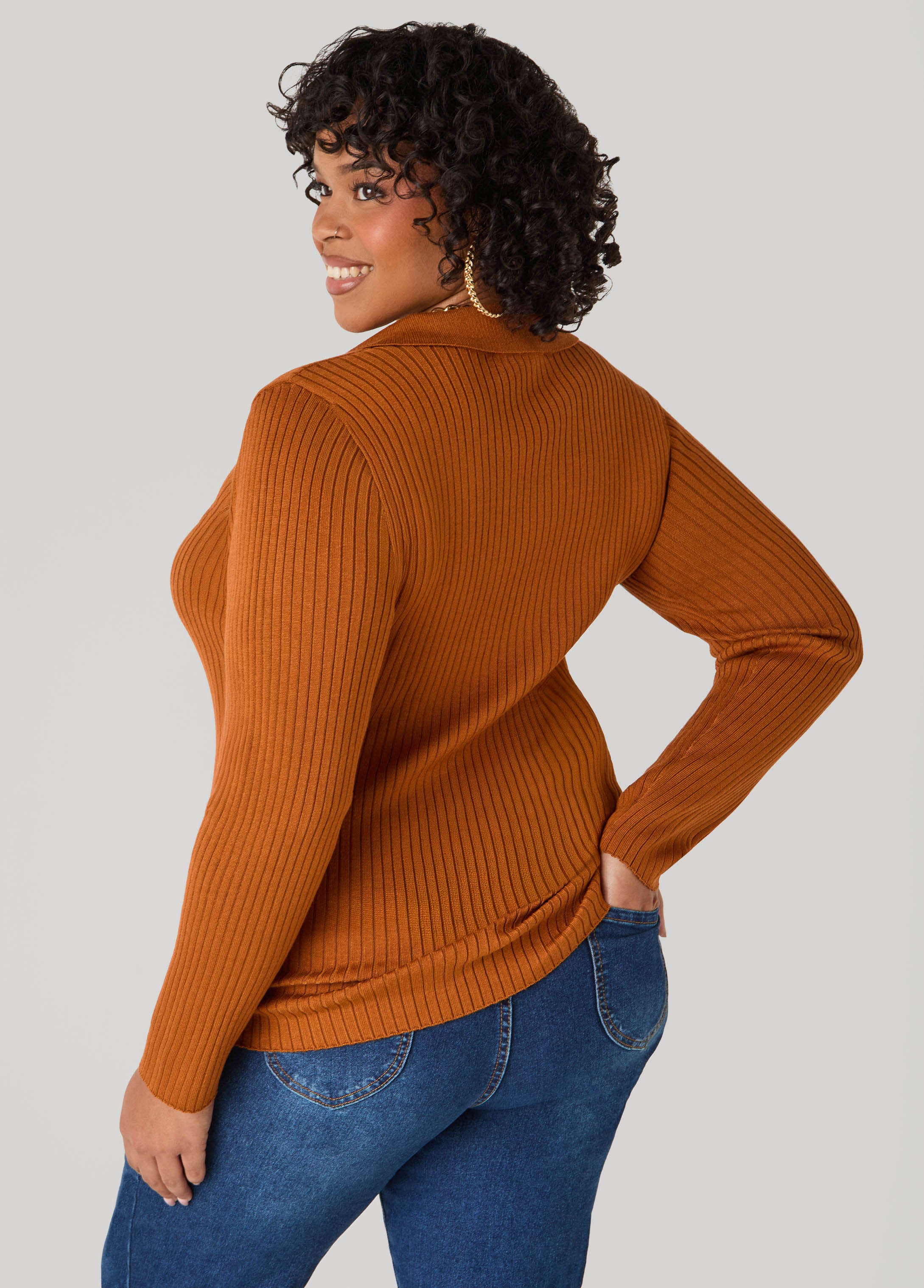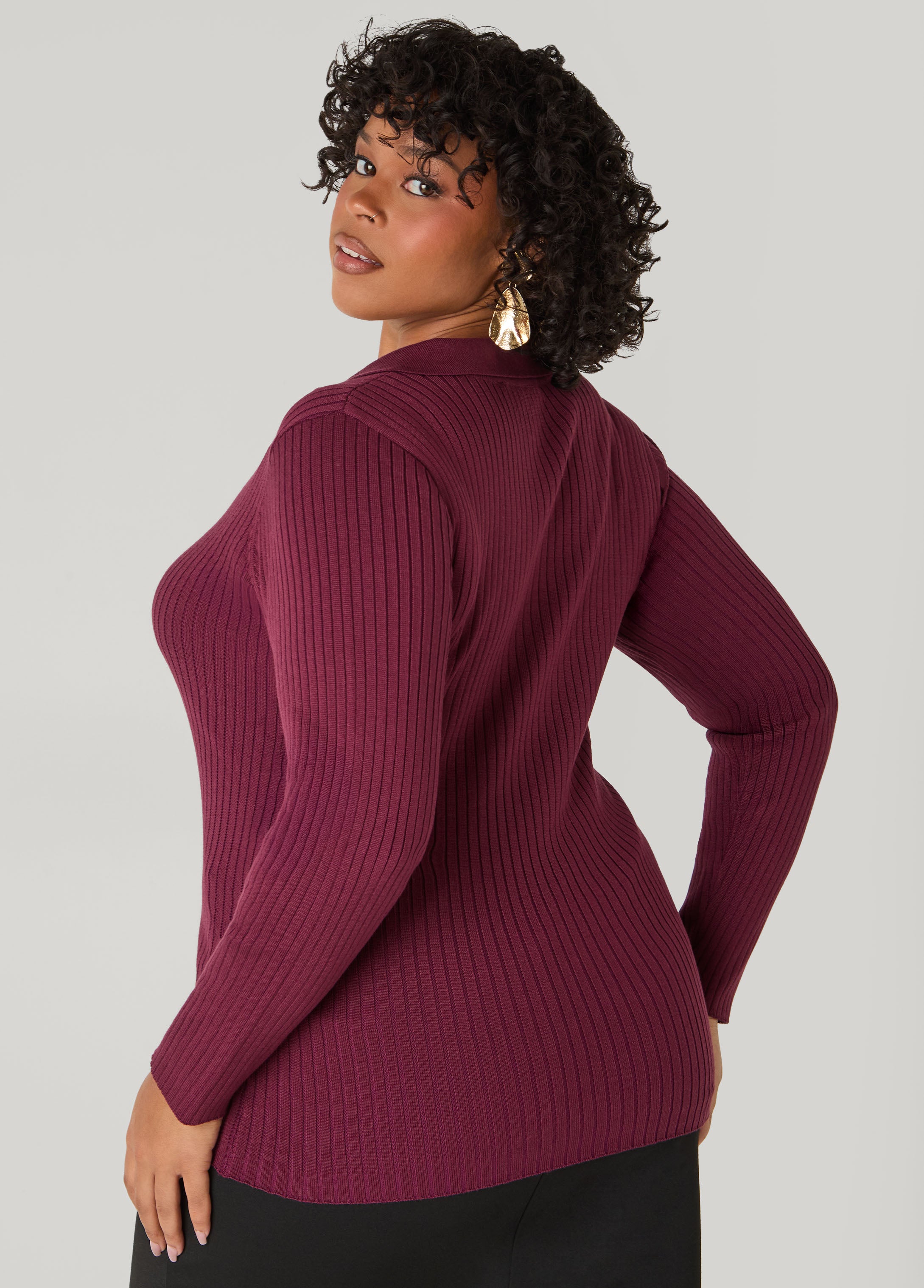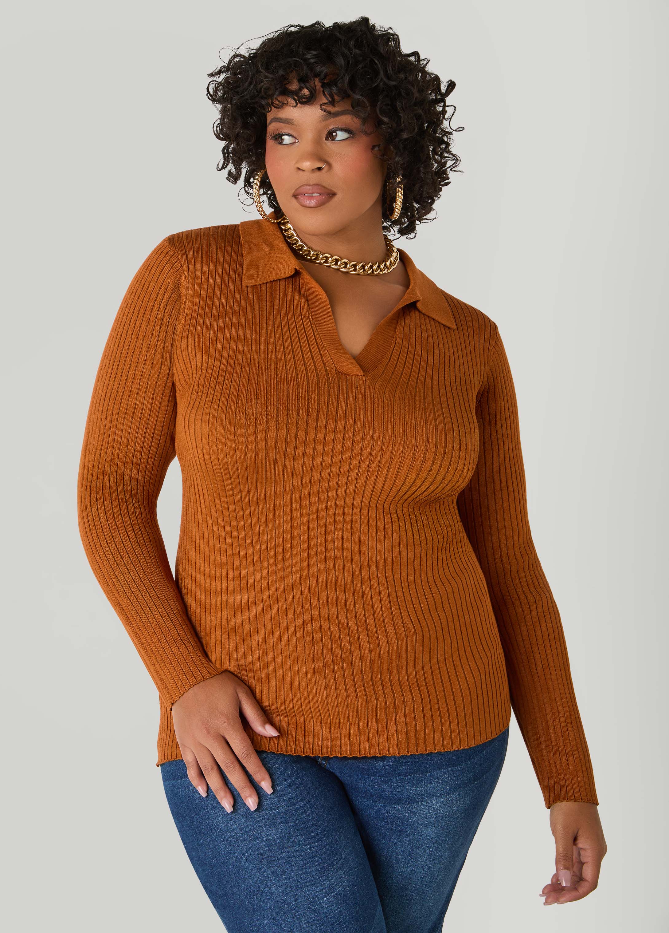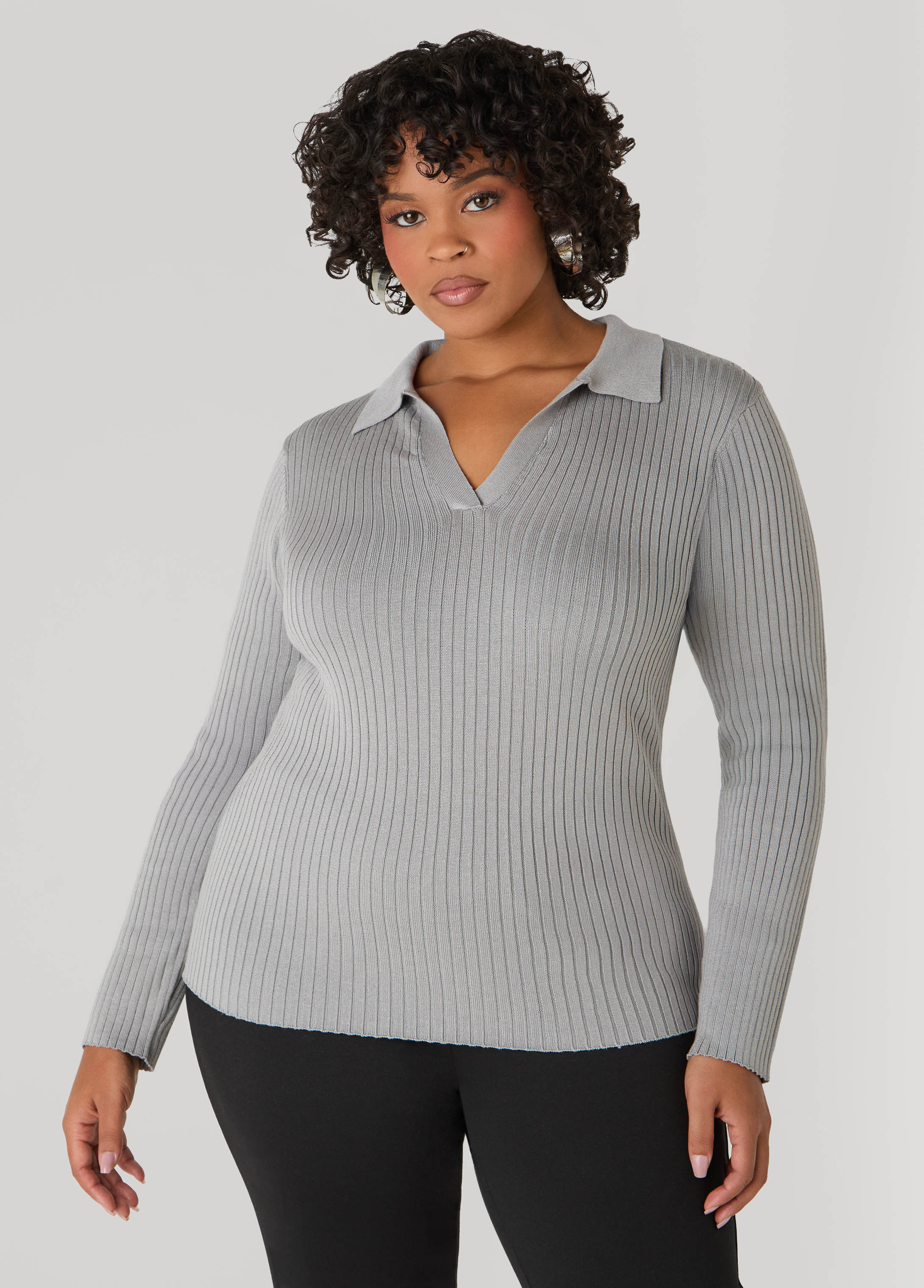 Ribbed-knit detailing shapes a V-neck sweater with long sleeves, turning a classic silhouette into a standout staple.