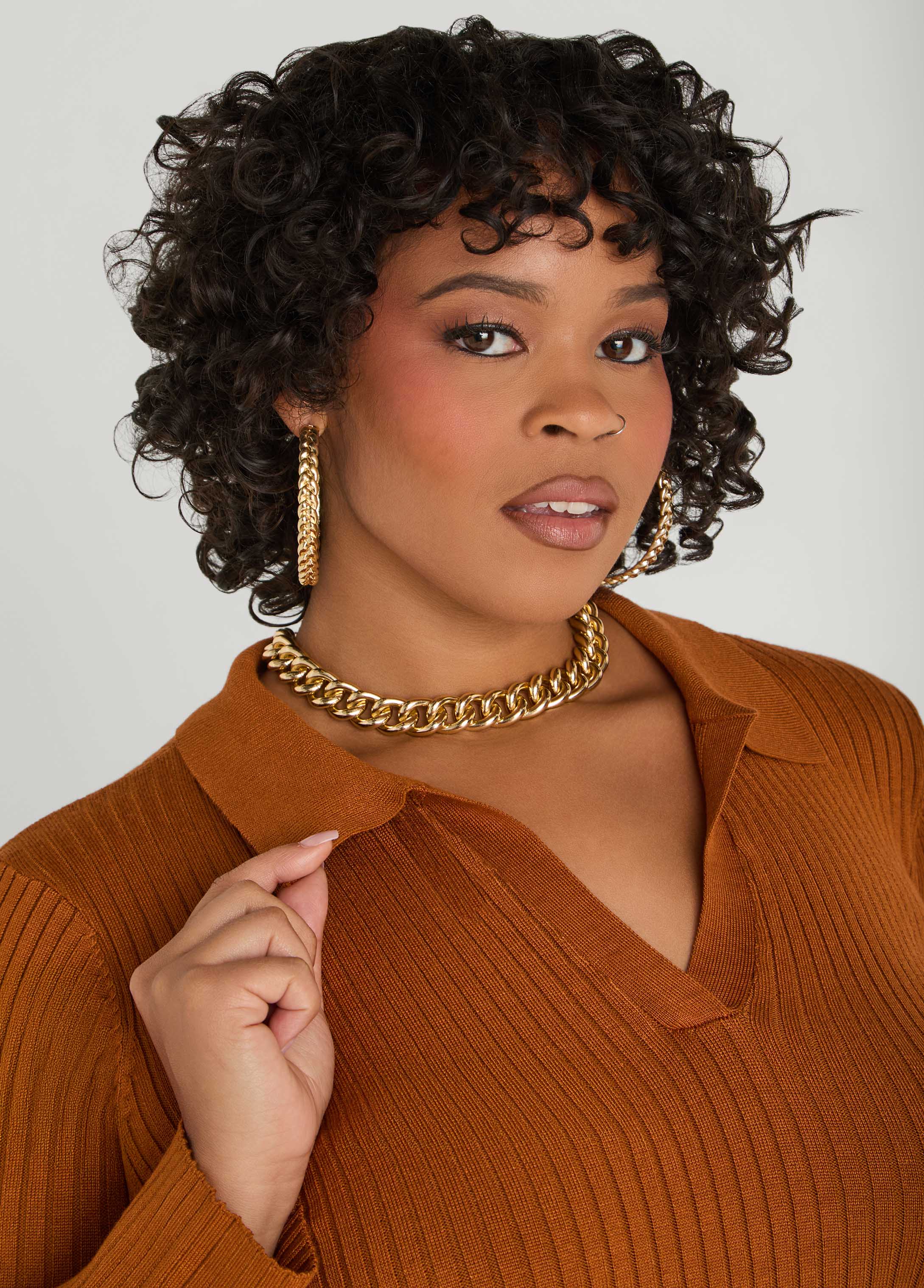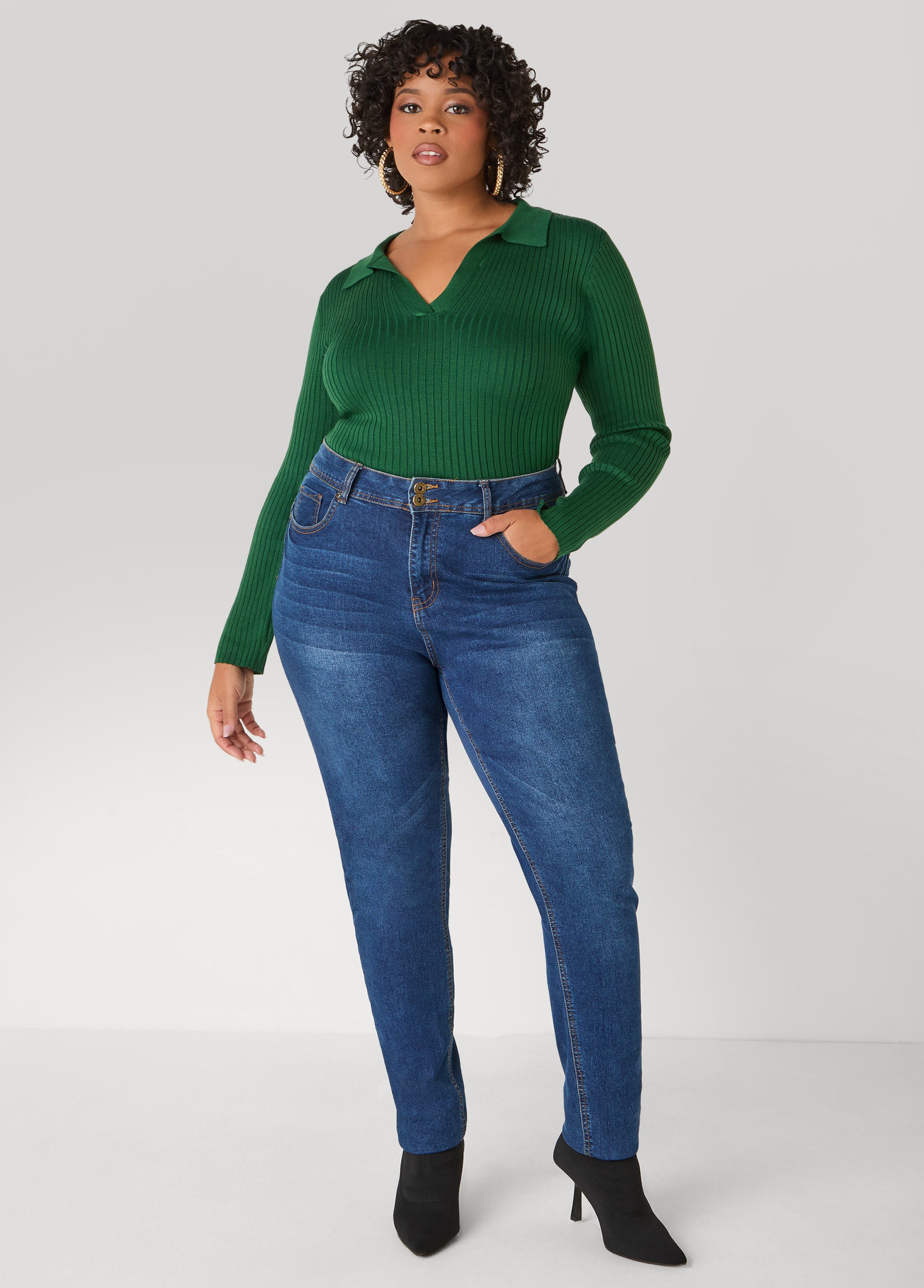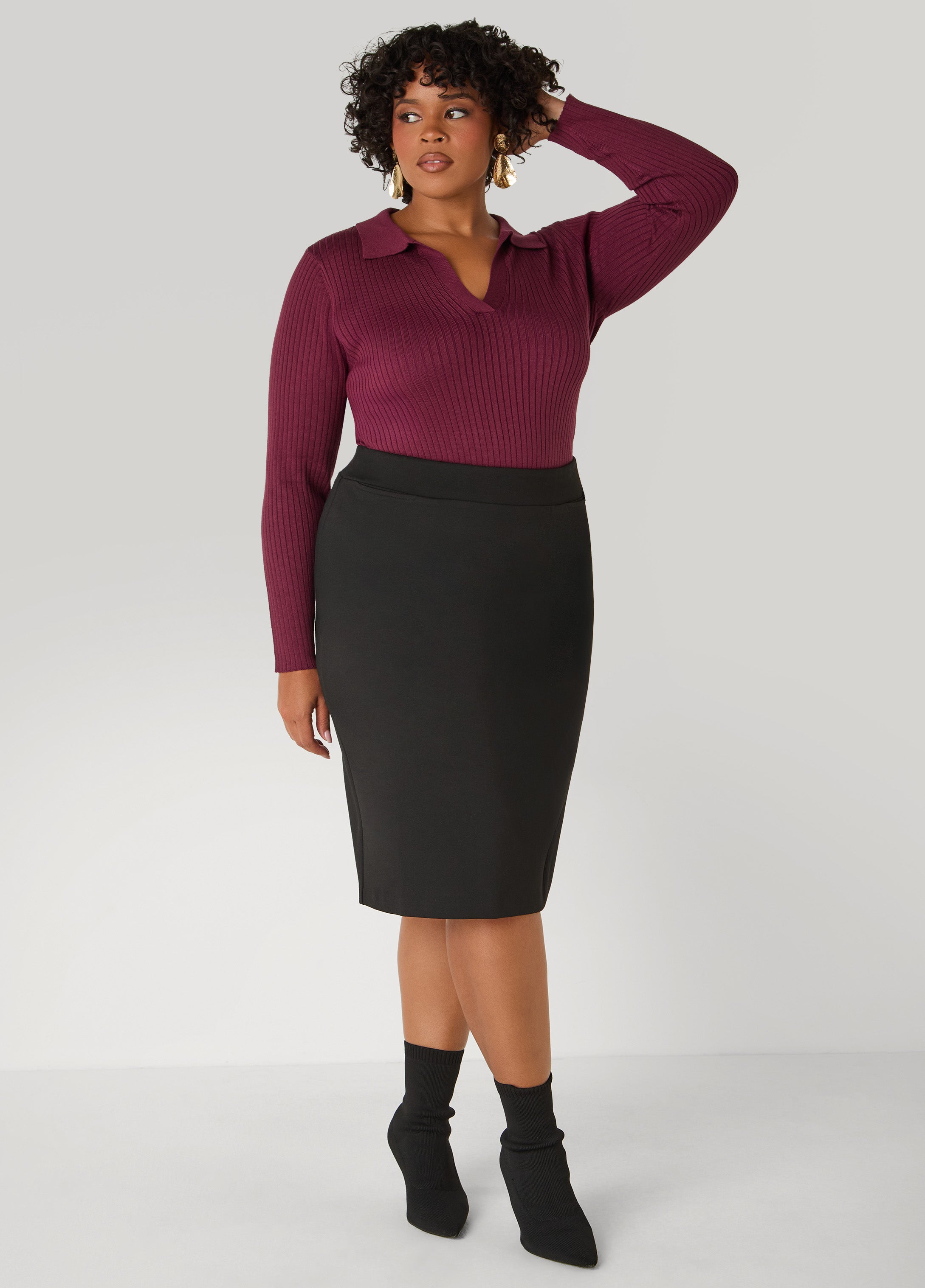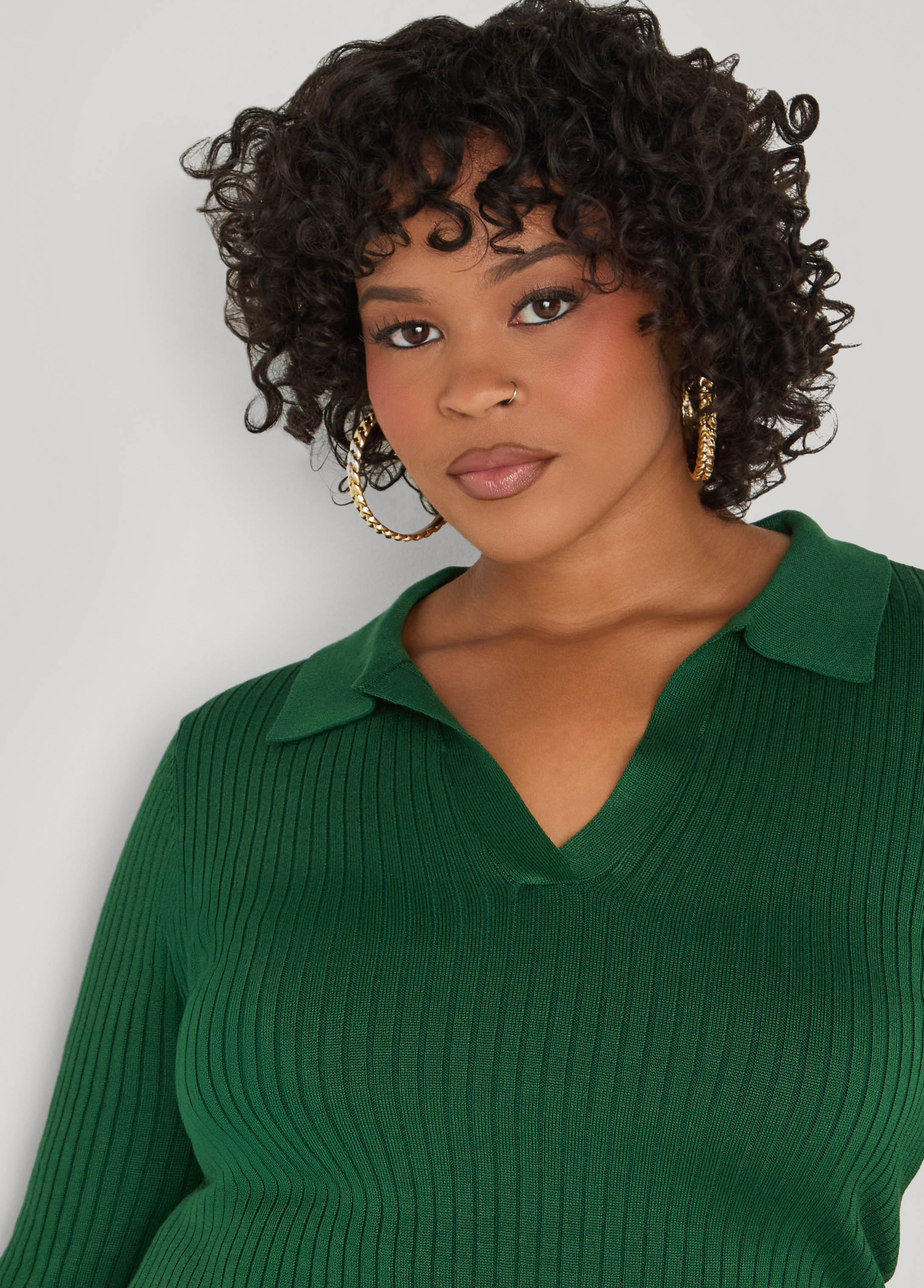 Ribbed-knit detailing shapes a V-neck sweater with long sleeves, turning a classic silhouette into a standout staple.