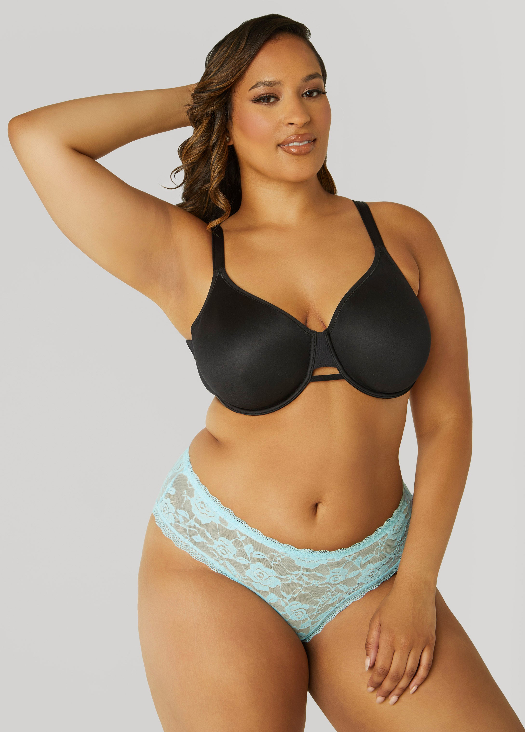 Feel confidently supported with this full-coverage minimizer bra, designed to smooth and shape. Crafted from luxurious satin and breathable mesh with a sexy cutout, this bra features lightly lined underwire cups for a natural silhouette and side-smoothing panels for a seamless look.