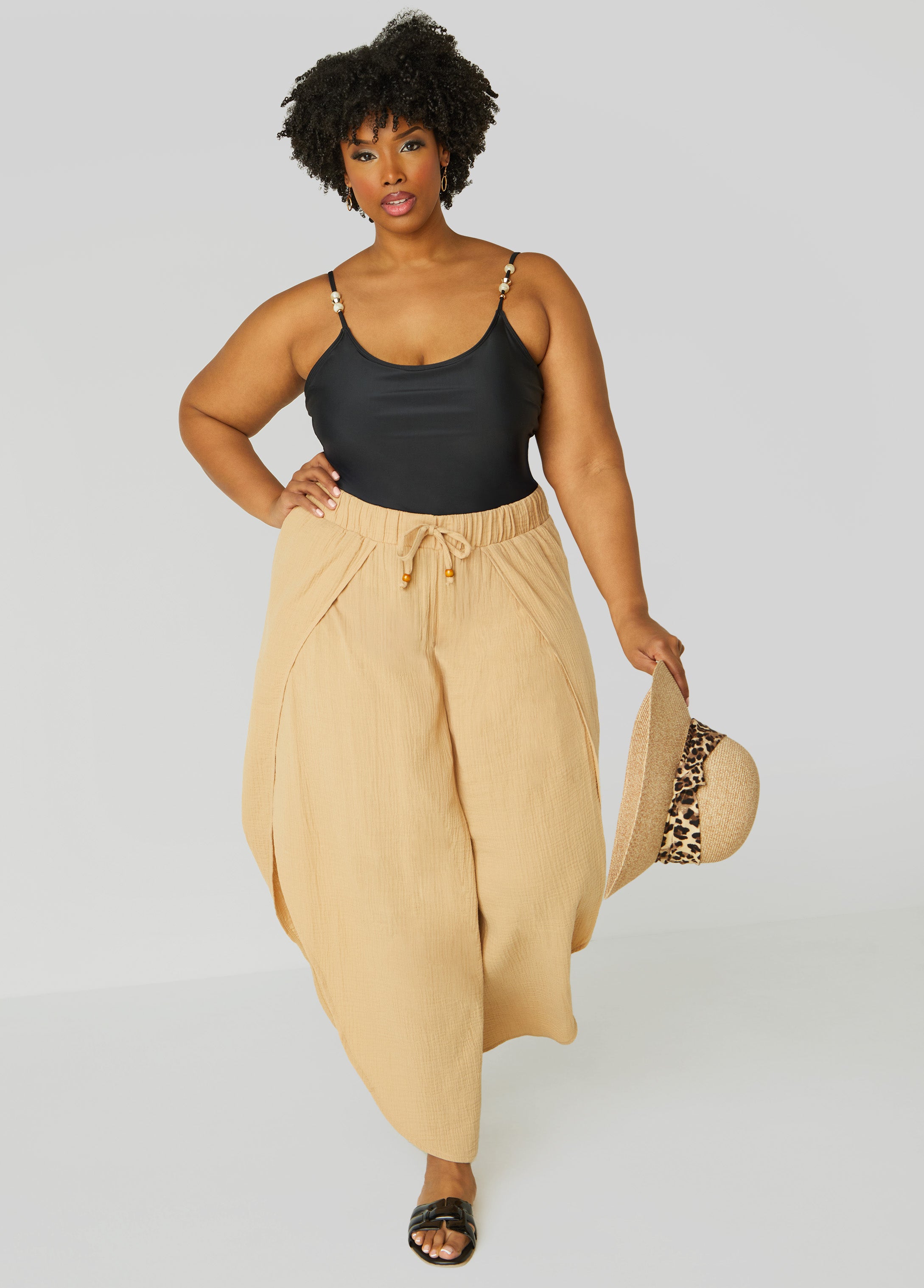 These cover-up pants bring all the joy with their textured cotton feel, faux wrap detail, and easy pull-on style. The faux drawstring waistband adds a cute touch, no tying required. Just slip ‘em on & chase the sun!