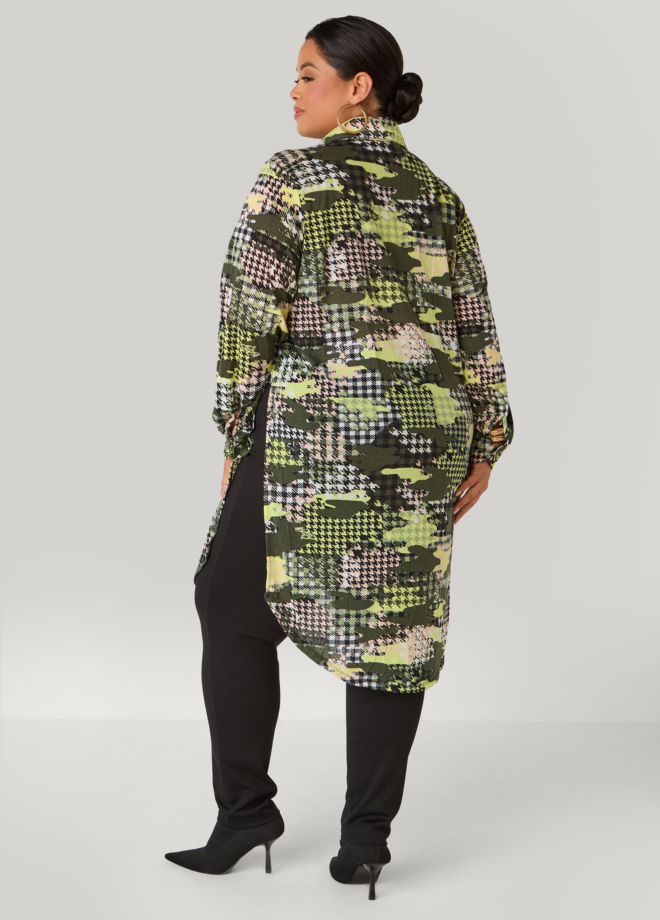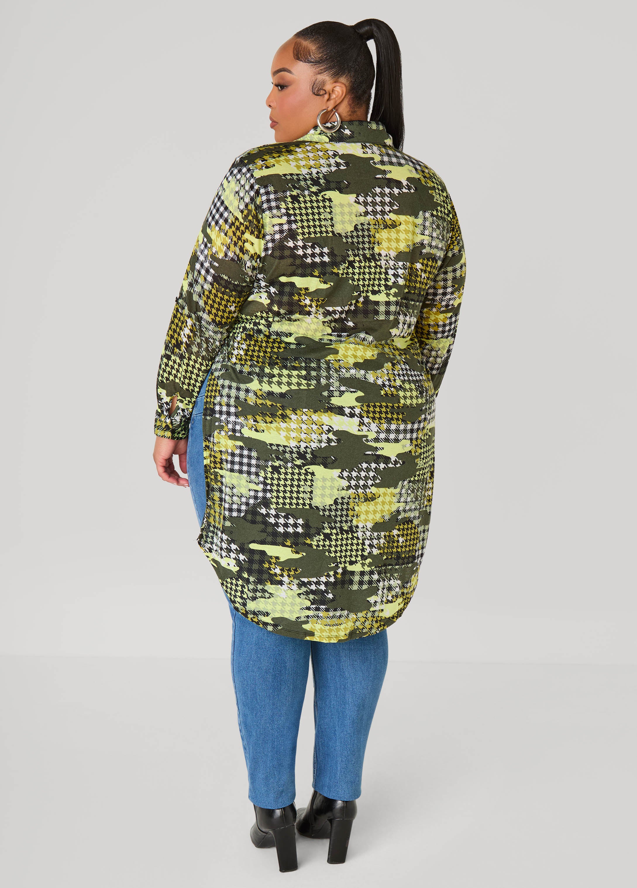 Double the print, double the attitude in our stretchy shirt made with a houndstooth meets camo print.