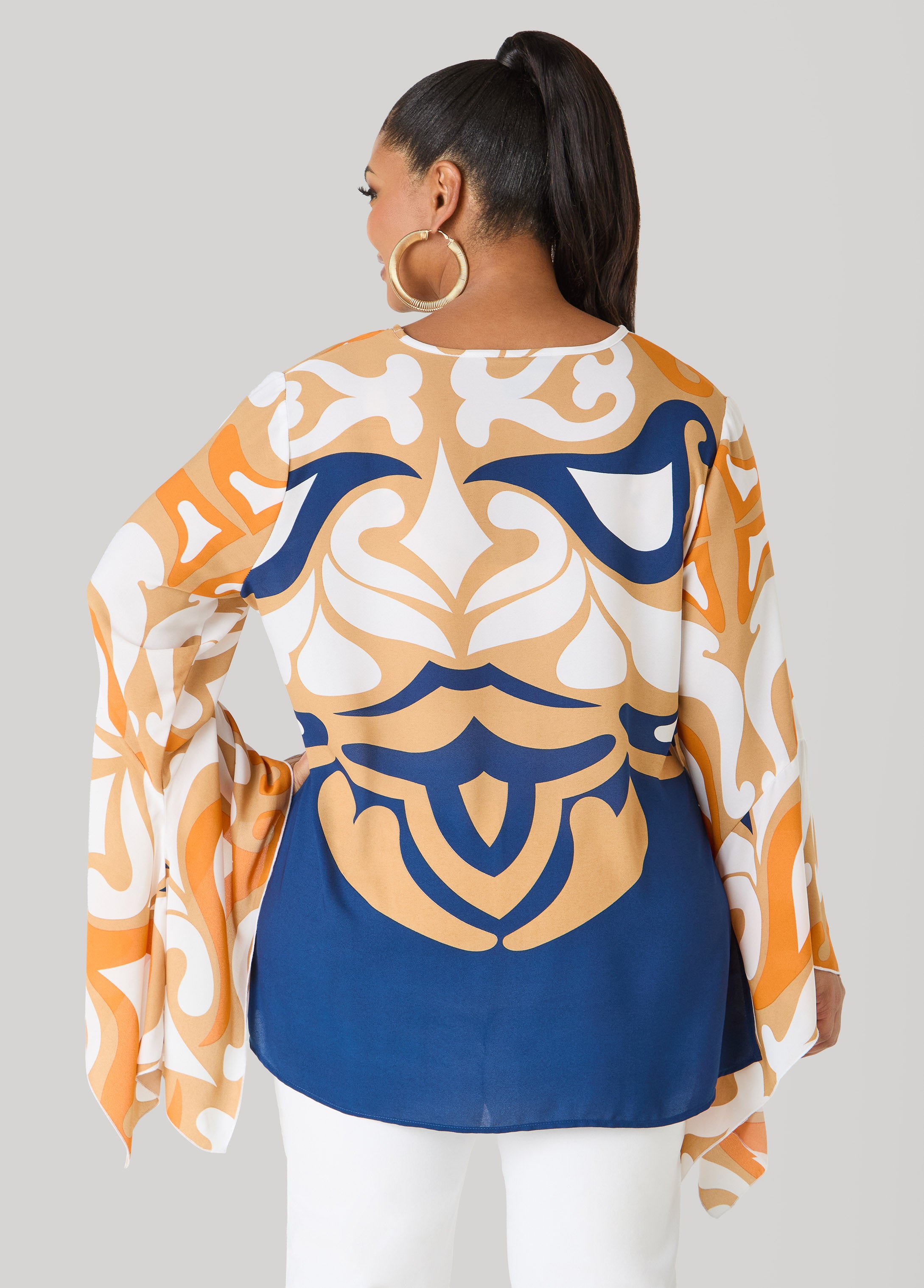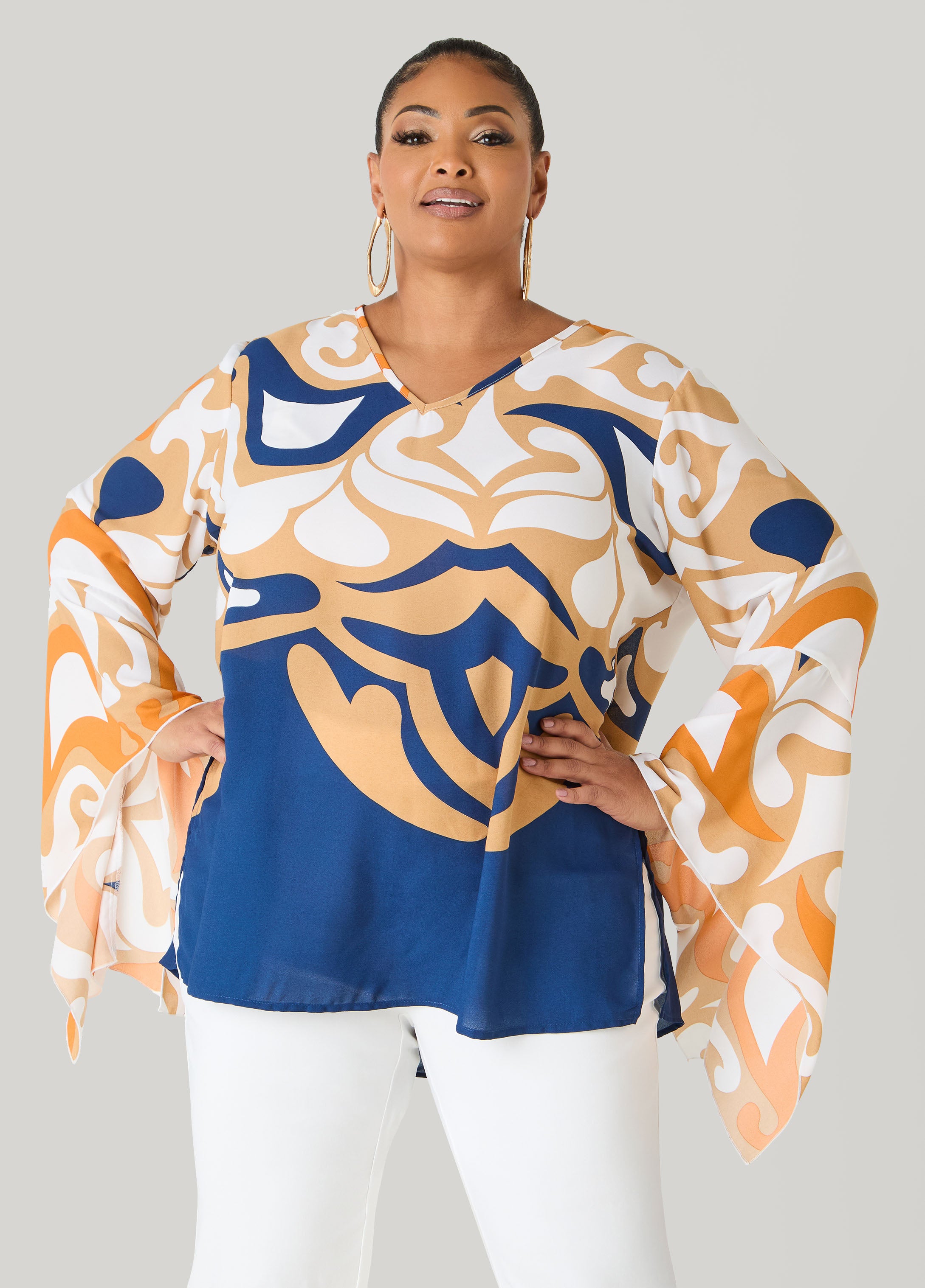 This printed crepe blouse turns everyday into an occasion. A V-neck frames the collarbone as drama sleeve cuffs offer a gorgeous, sweeping effect.
