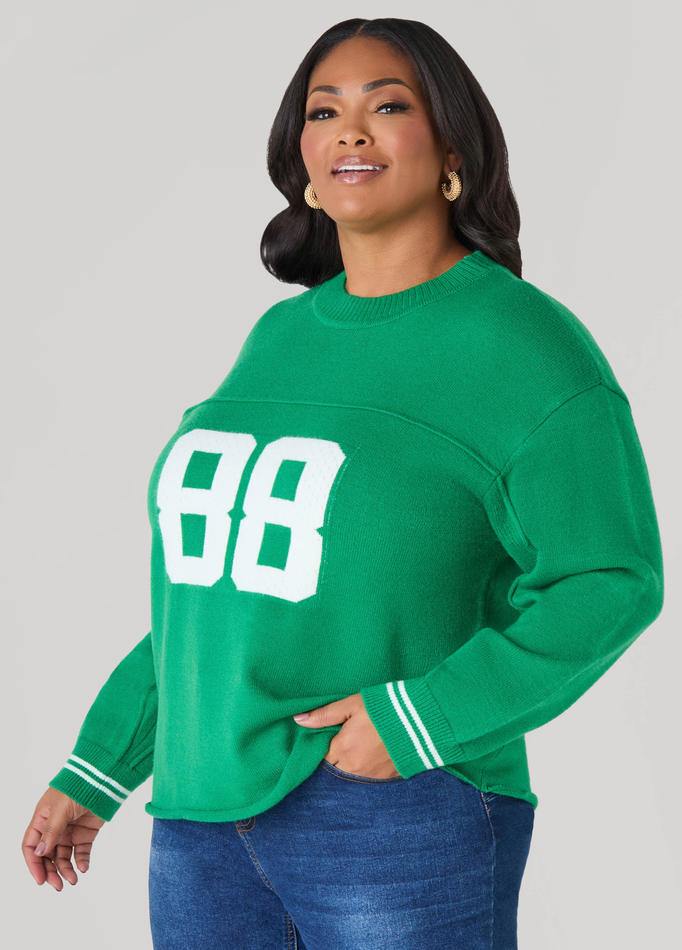Play the field in style. This varsity sweater brings cozy vibes with a clever twist thanks to its jacquard-knit jersey number.