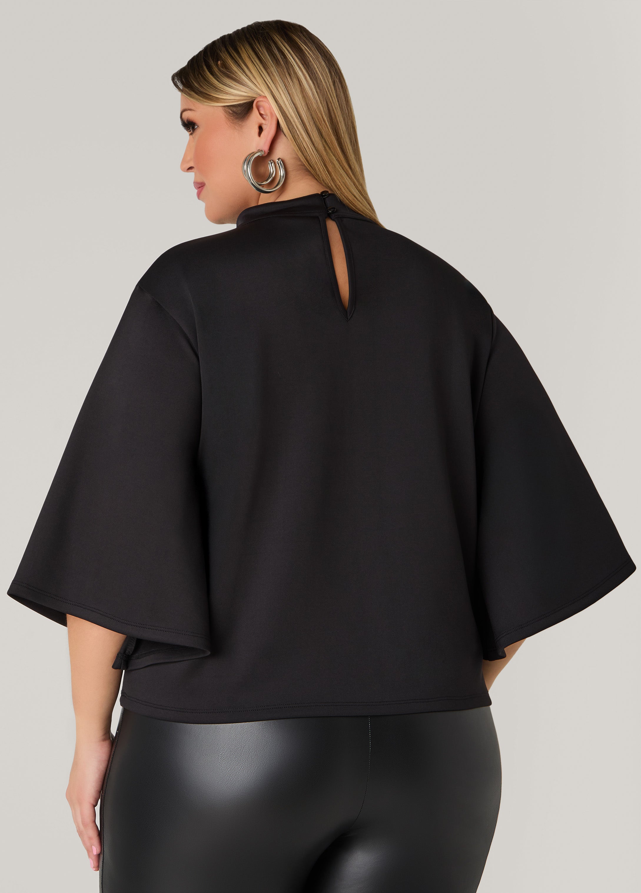 Mock neckline, statement sleeves and diva soutache designing make this scuba top a showstopper you’ll actually want to wear out.