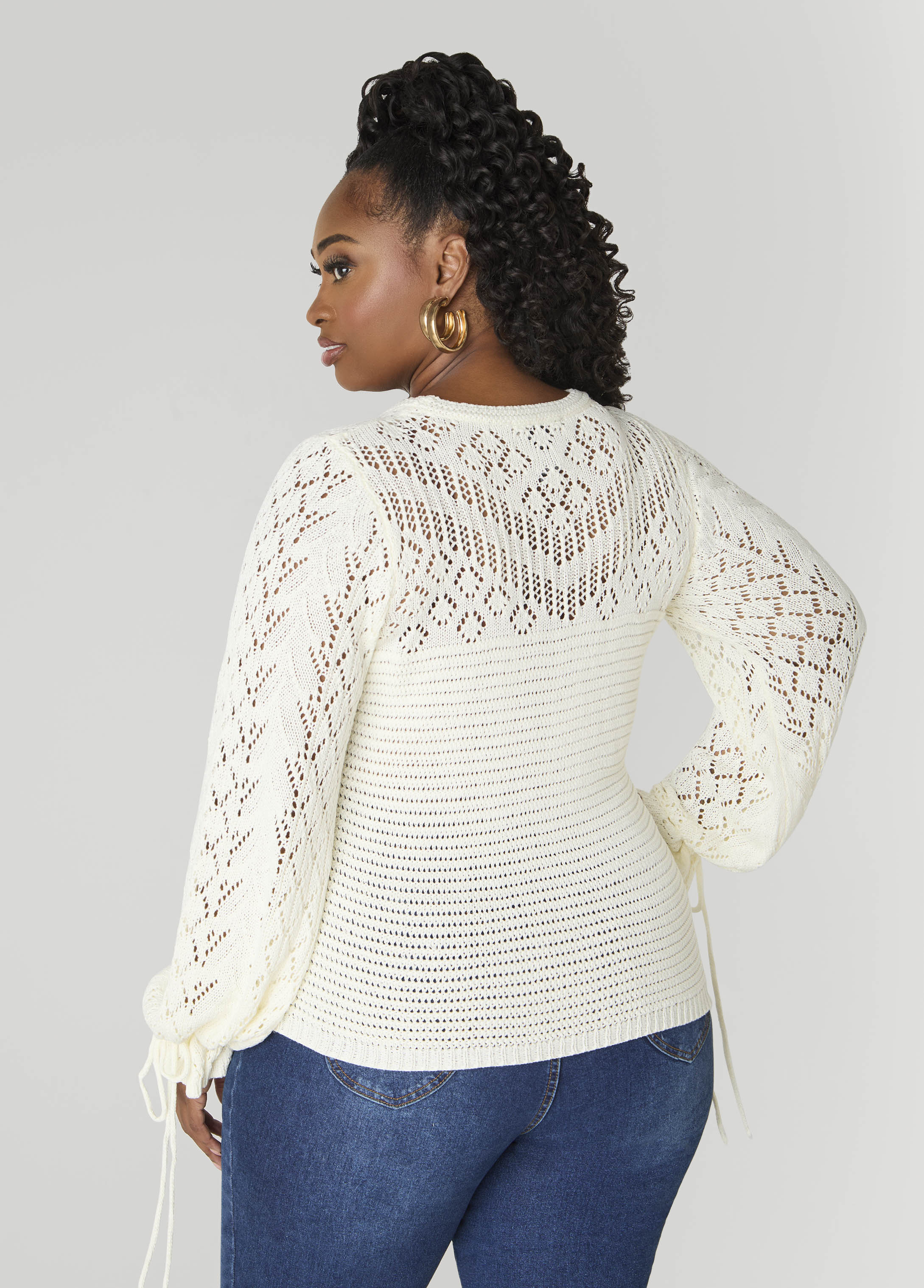 Our crochet open-knit sweater is made for sunshine and good times. The peek-through design keeps it breezy, while drawstring sleeve cuffs let you style it just how you like.