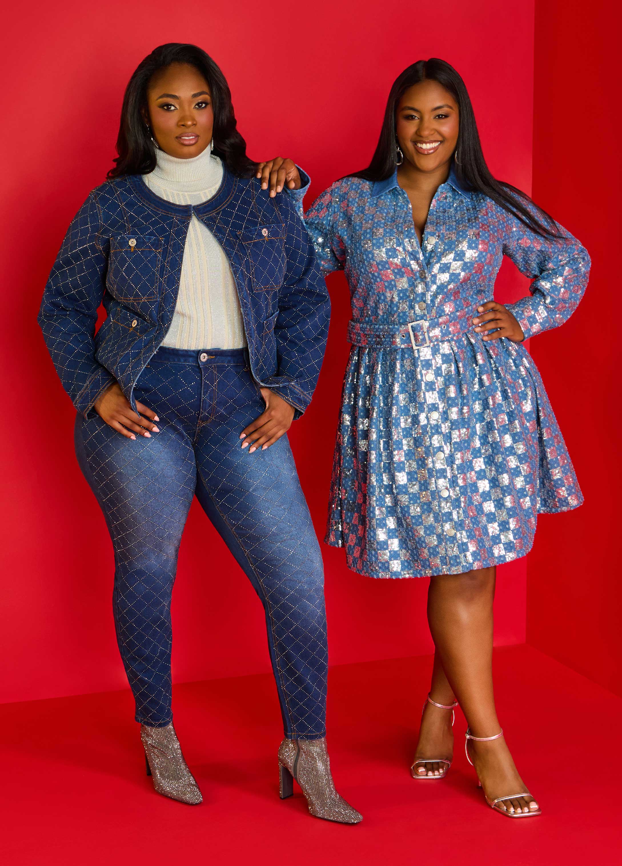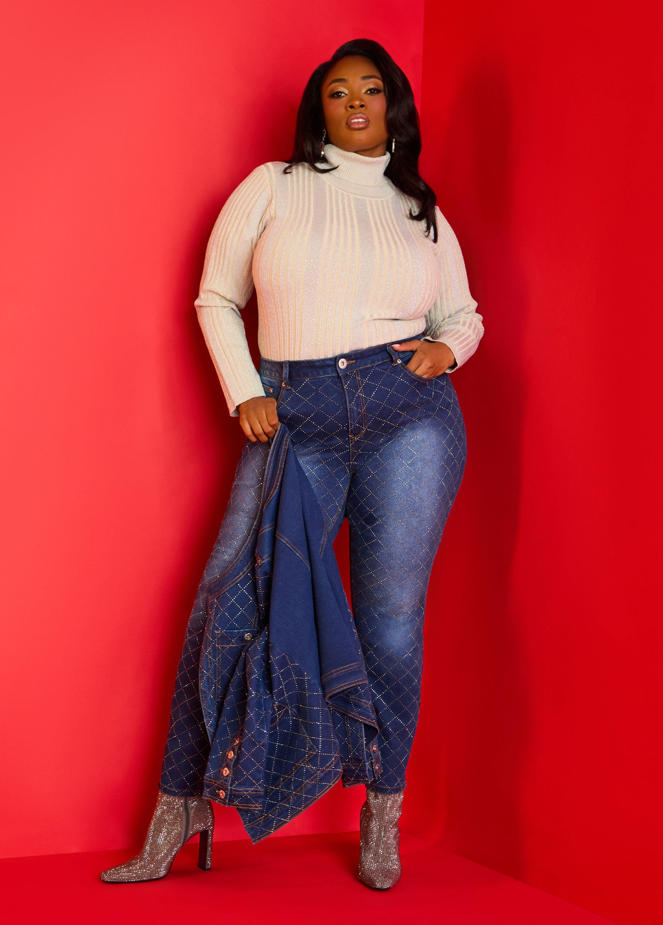 These high-waist skinny jeans are decked out in a checked-stud pattern. Cut to hug in all the right places and ready to pair with the matching jacket for an instant two-piece flex.