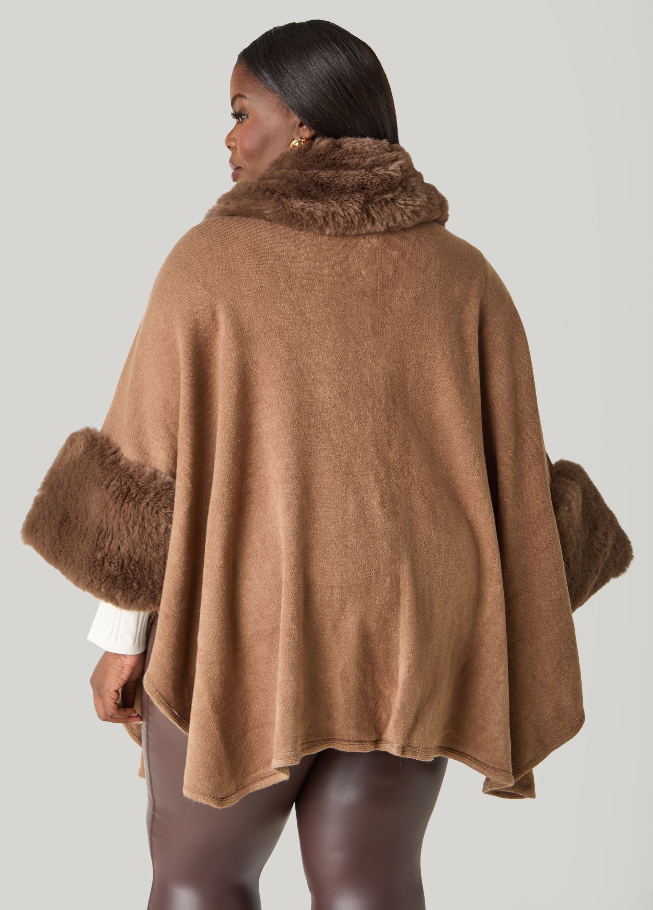 • Adrienne Vittadini knitted ruana with faux fur trims. Open front.