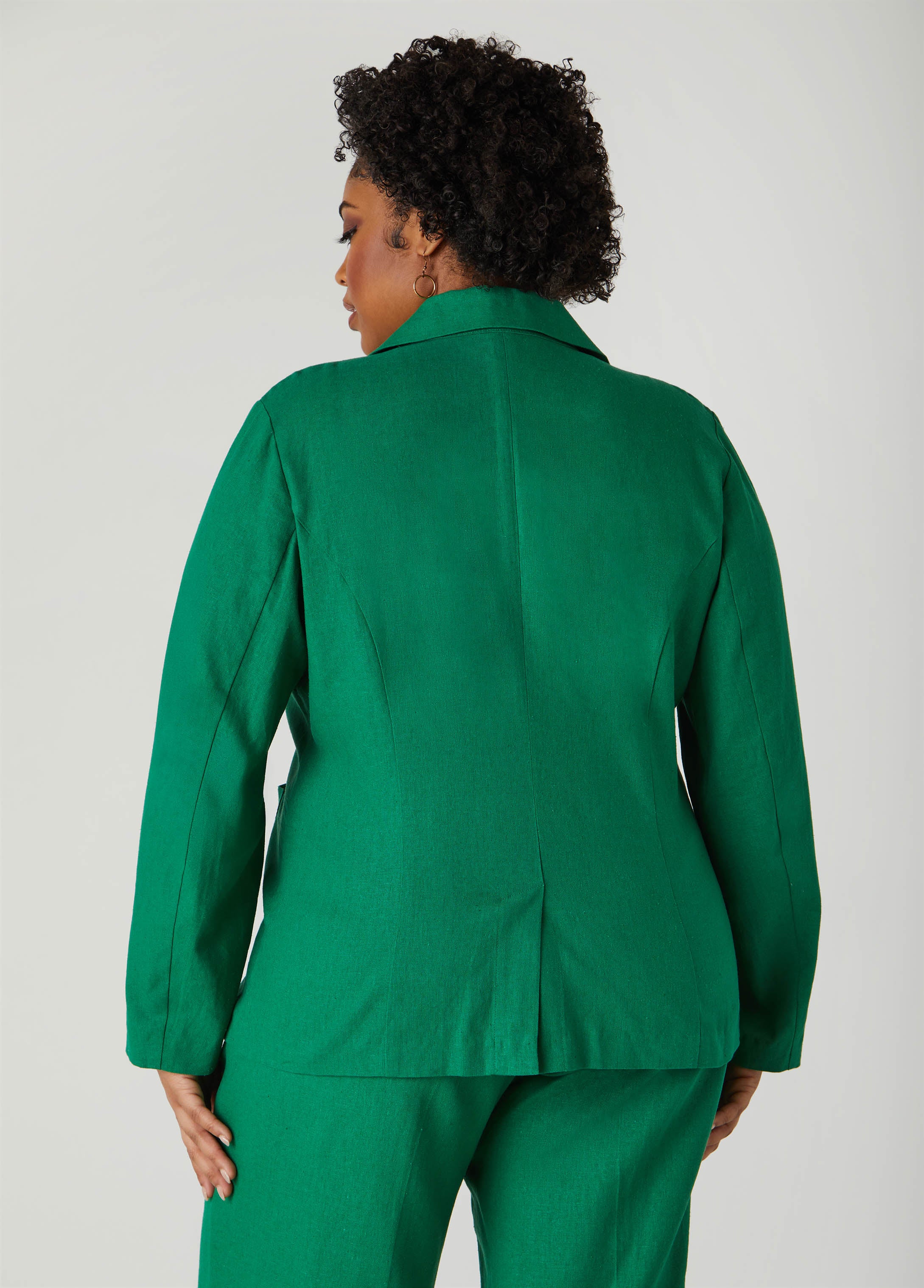Our linen-blend blazer is your go-to for warmer days. Featuring two patch pockets at the front, it combines effortless style with a laid-back vibe. Wear it with the matching trousers for a chic two-piece set or throw it over your favorite summer outfits for that cool, confident look.