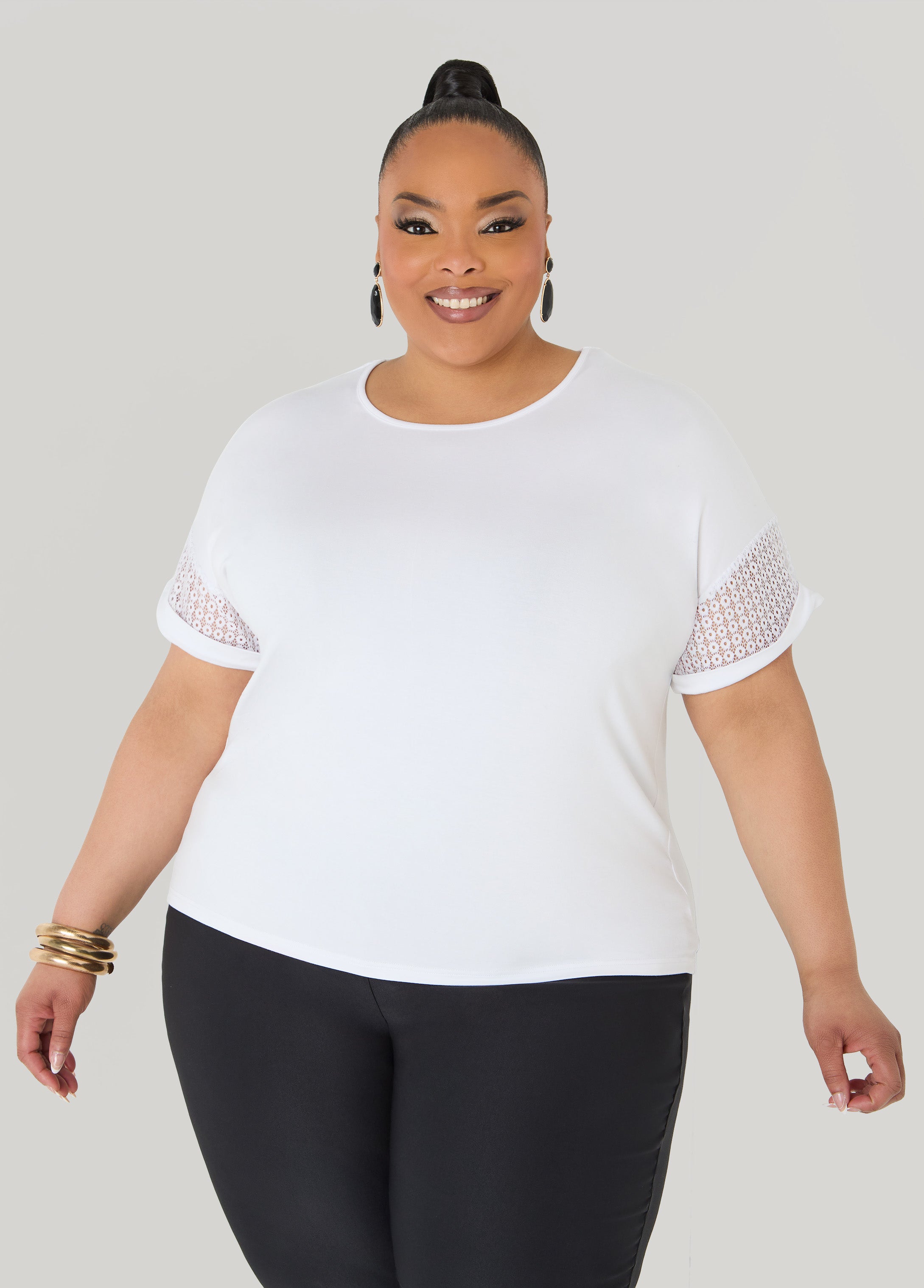 Soft modal-blend jersey finished with crochet-lace panels for a touch of texture. This t-shirt balances comfort with detail, giving a classic silhouette a more considered feel.