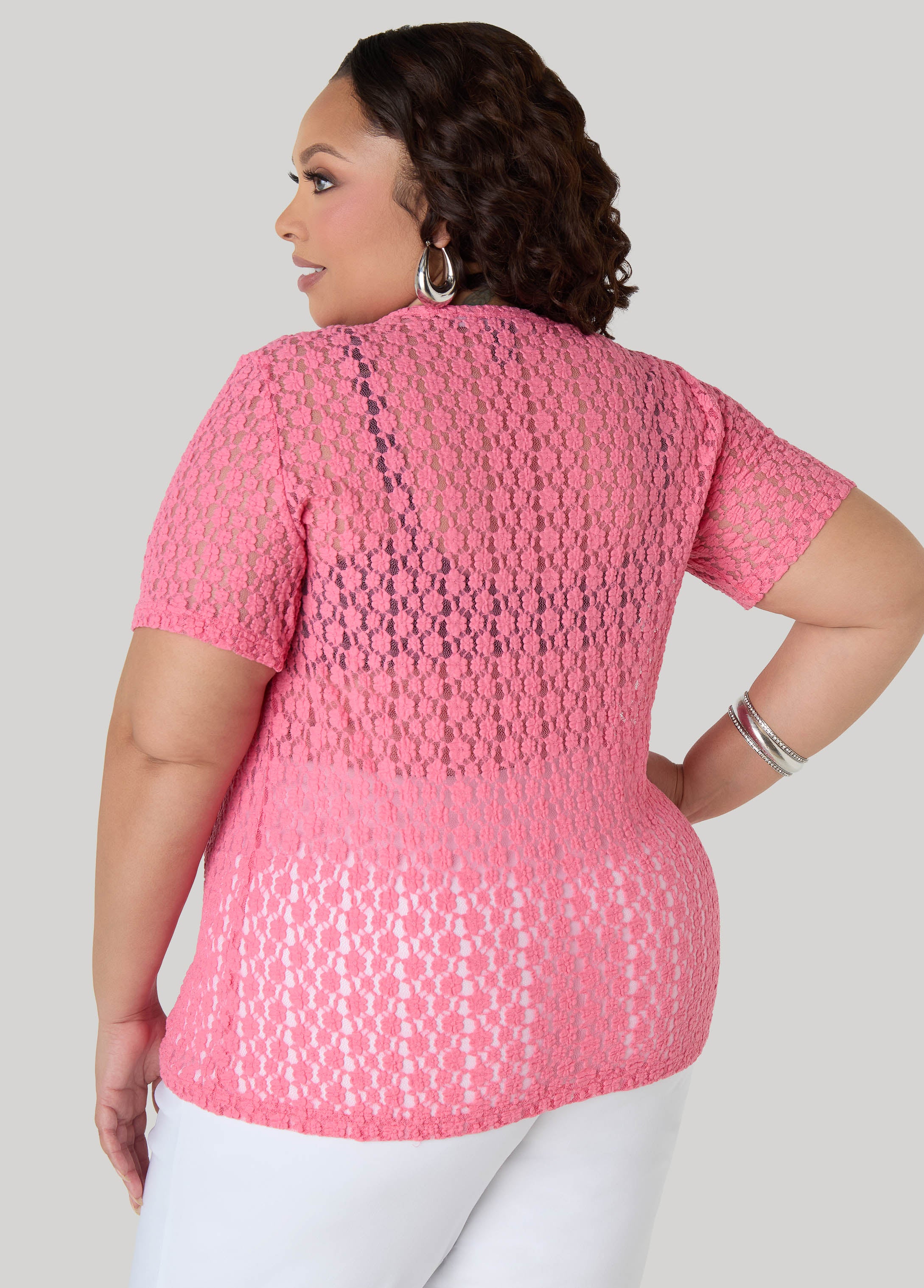This floral mesh tee skims the body with a barely-there feel. Sheer & sultry, it lets the pattern do the flirting while keeping the look effortlessly daring.