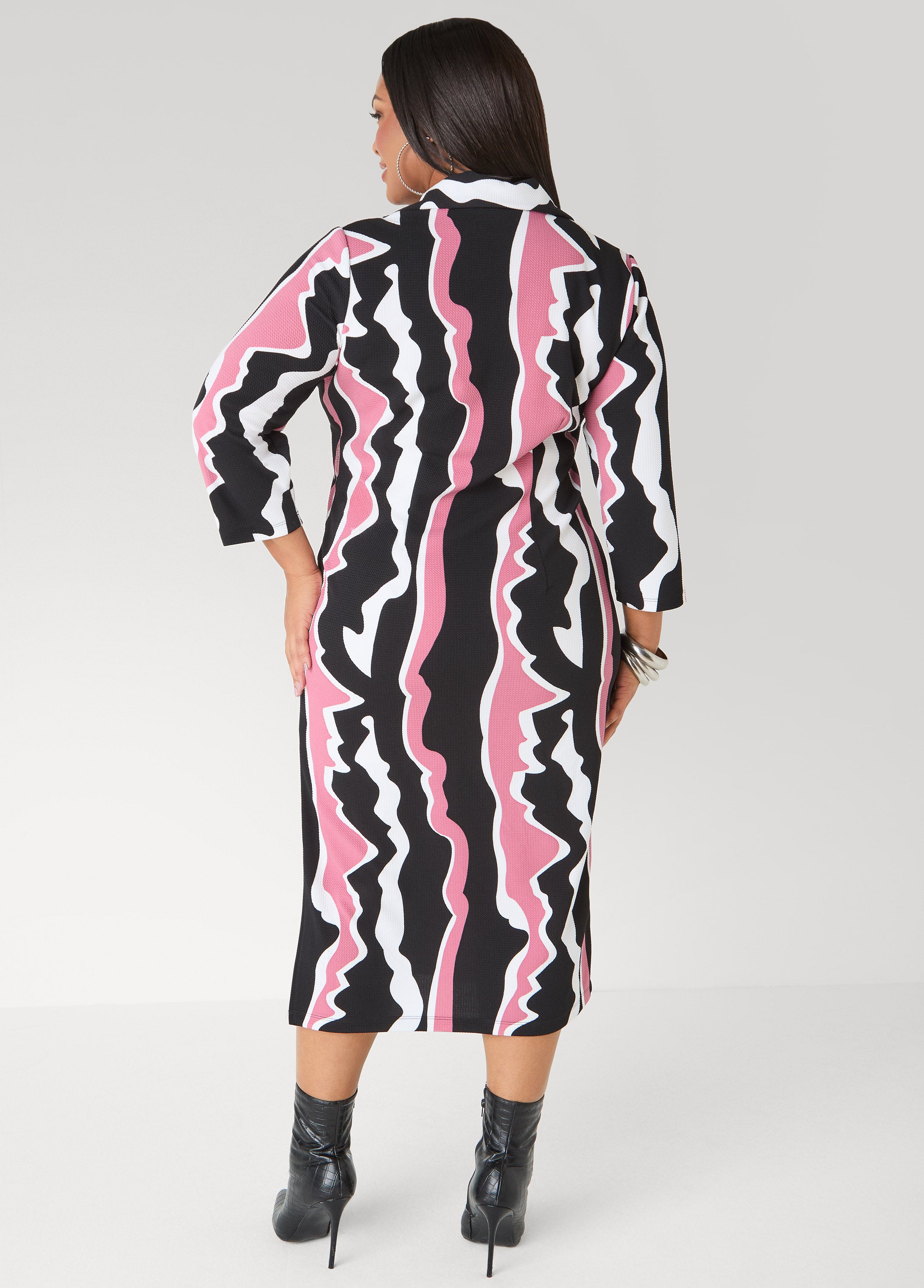 Soft texture, fluid lines and a wavy print that feels almost dreamlike. This textured-knit midaxi drapes with quiet confidence, finished with a sleek zip detail and a side slit that reveals just enough.