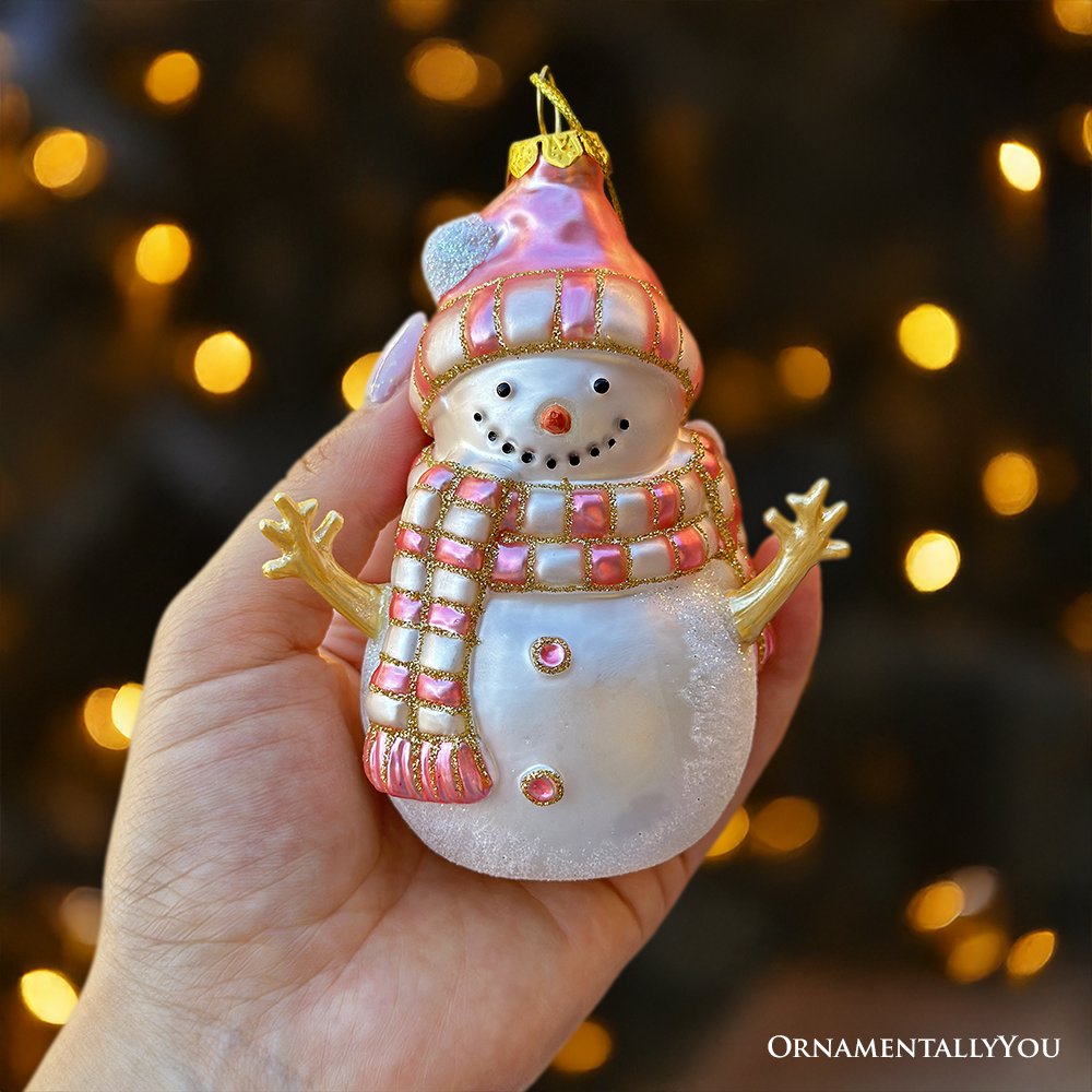 Deck the halls with a dash of whimsical charm! This frosty friend is here to bring an eclectic twist to your holiday decor with a pop of pink that will turn heads on any Christmas tree. Its glassy sheen catches the light like a sparkling winter wonderland, making it the perfect standout ornament for those who love a bit of non-traditional holiday flair. Whether you're crafting a colorful holiday scene or looking for a unique stocking stuffer, this snowman’s rosy hue adds a playful vibe to your festive celebrations.
