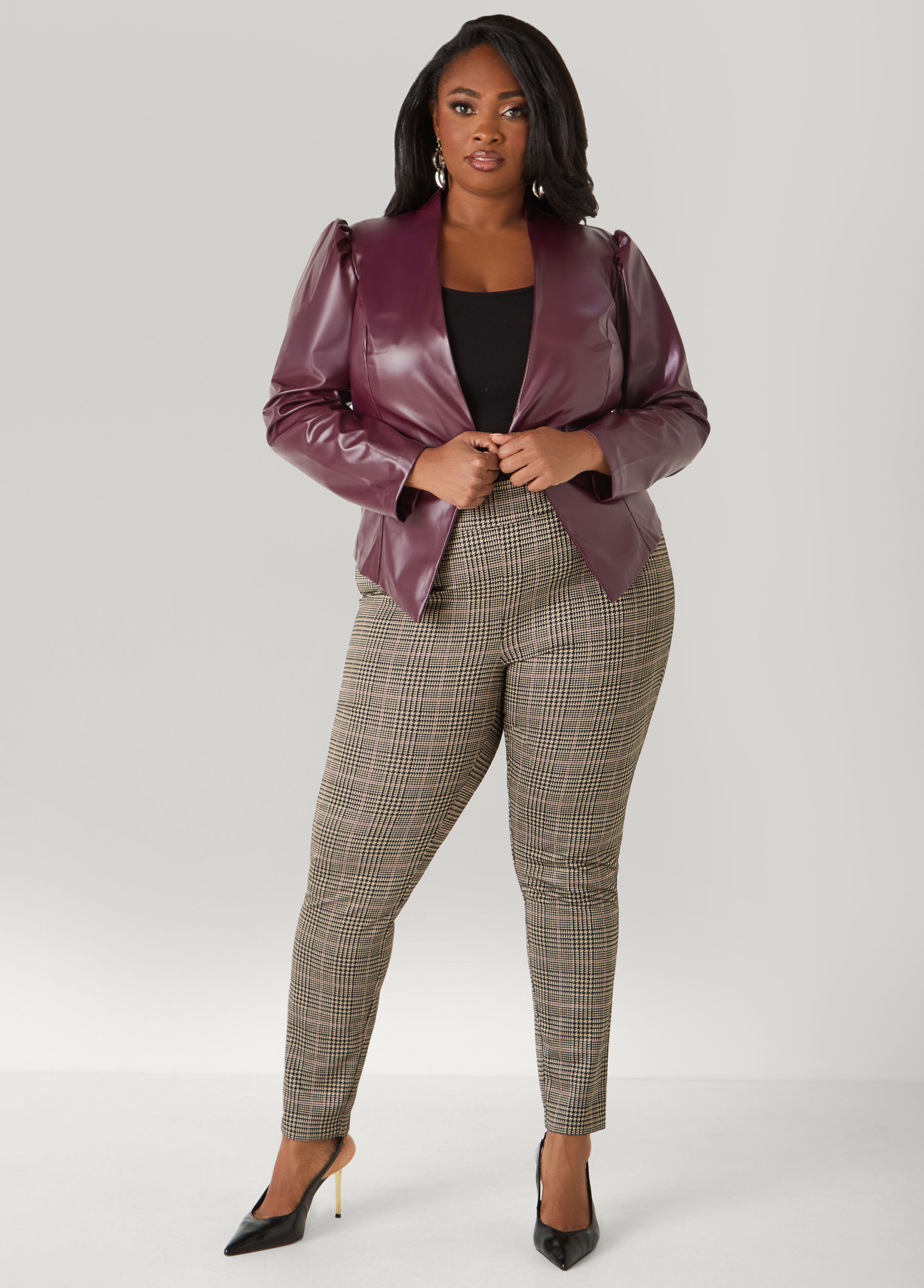 Soft, supple faux leather creates a tailored puff sleeve jacket perfect for layering while showcasing your snatched waist and gorg curves.