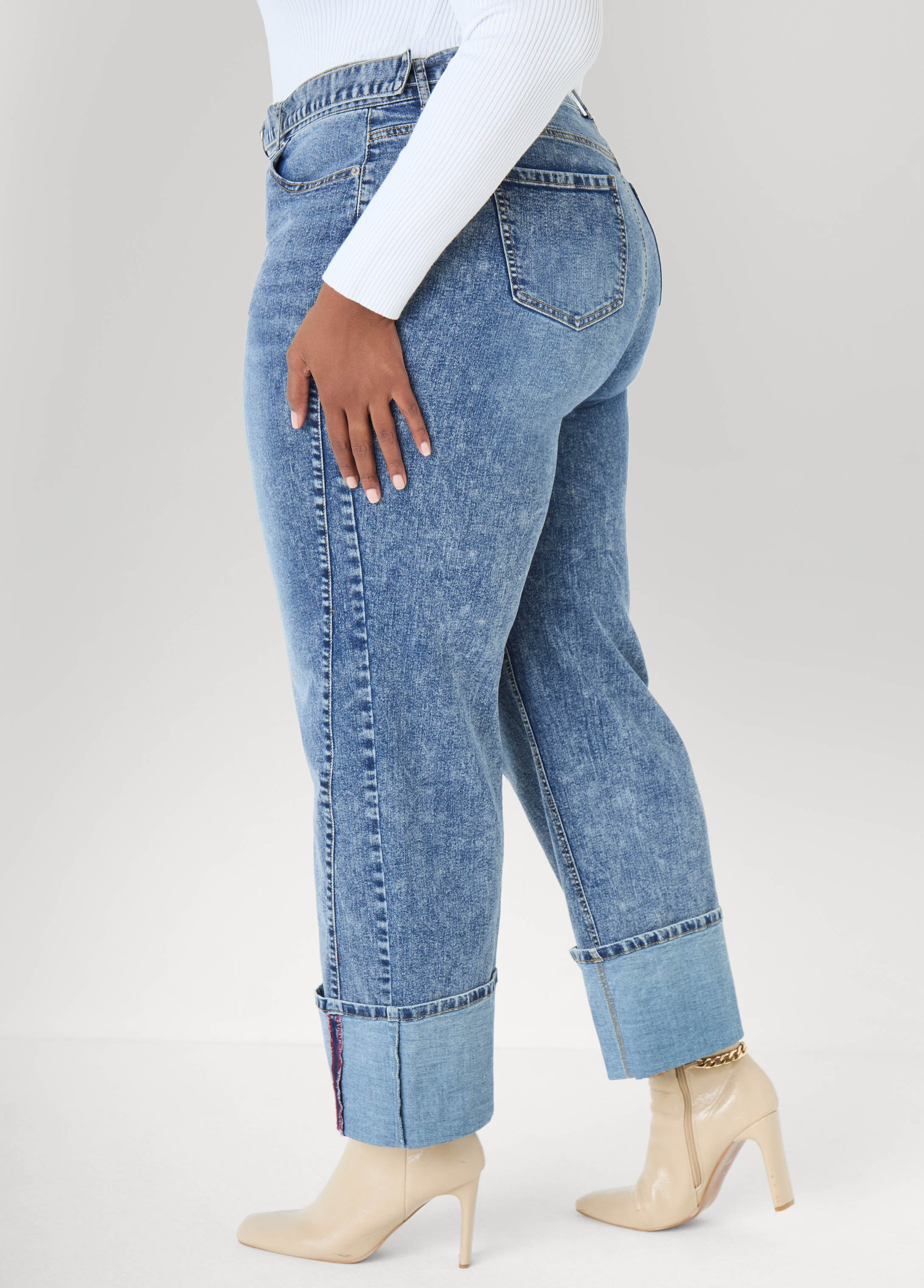 Plus Size Relaxed Fit Stone Wash Jeans High Waist Wide Leg Jeans