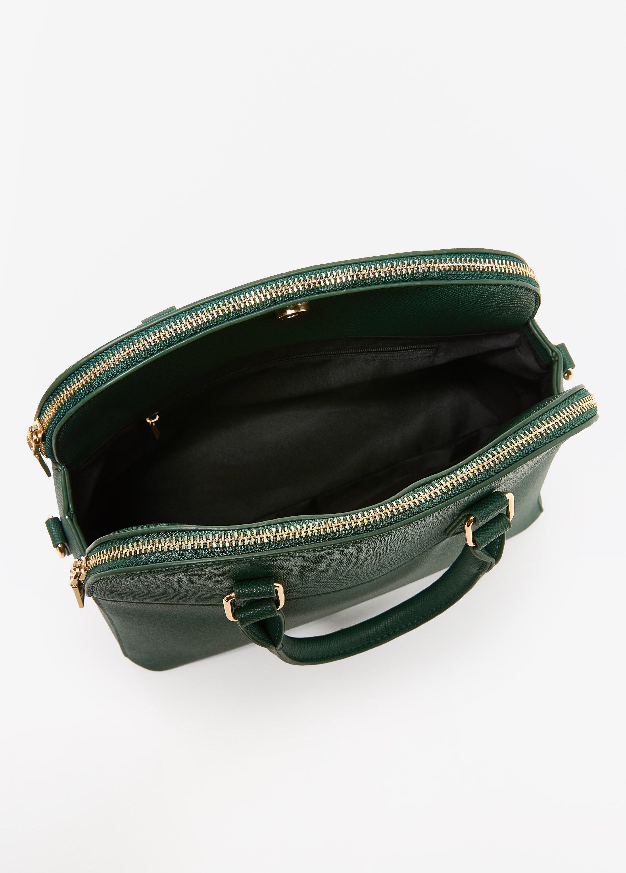 Your everyday just found its upgrade. This textured faux leather satchel, finished with gleaming gold hardware, carries a polished appeal from desk to dinner.