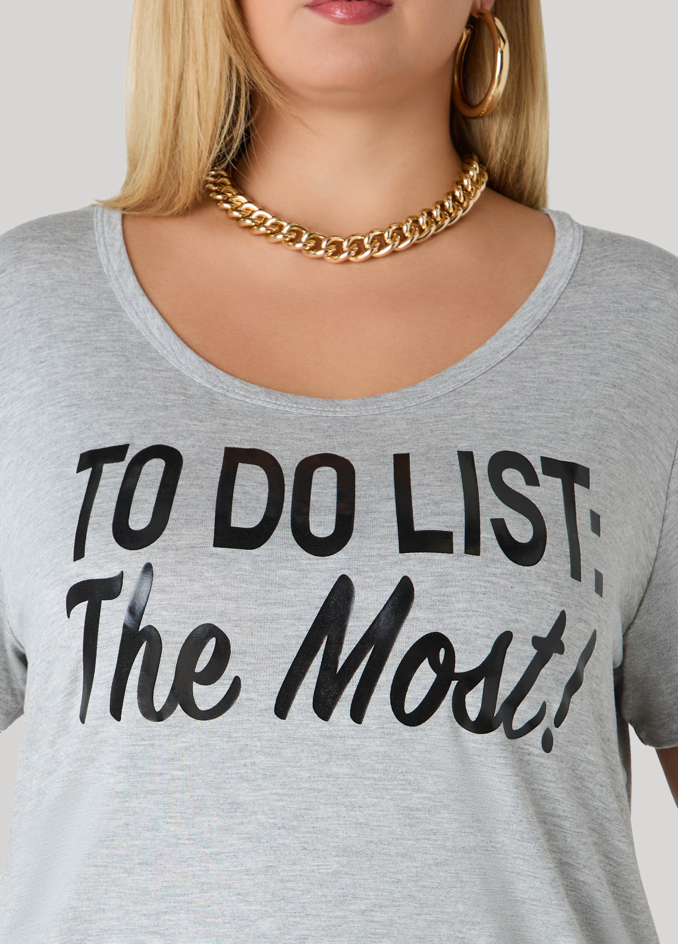 Marled stretch-knit with a graphic that already knows the assignment. “To Do List: The Most!” sets the tone, and this tee shows up ready to back it up.